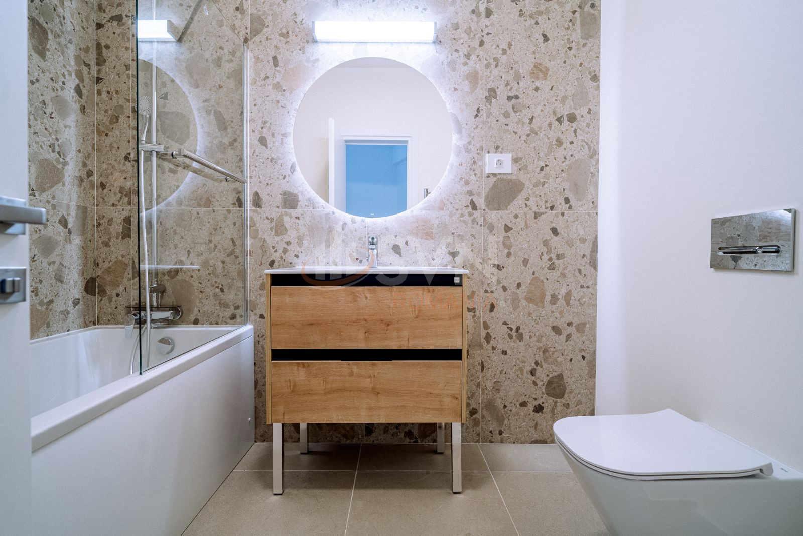 Apartamentul este decomandat, recent finisat, dispune de doua bai, incalzire in pardoseala, parchet din lemn stratificat si bucatarii complet mobilate si utilate. Spatiul ofera lumina naturala din plin si o compartimentare moderna, adaptata nevoilor unei familii sau unui cuplu.