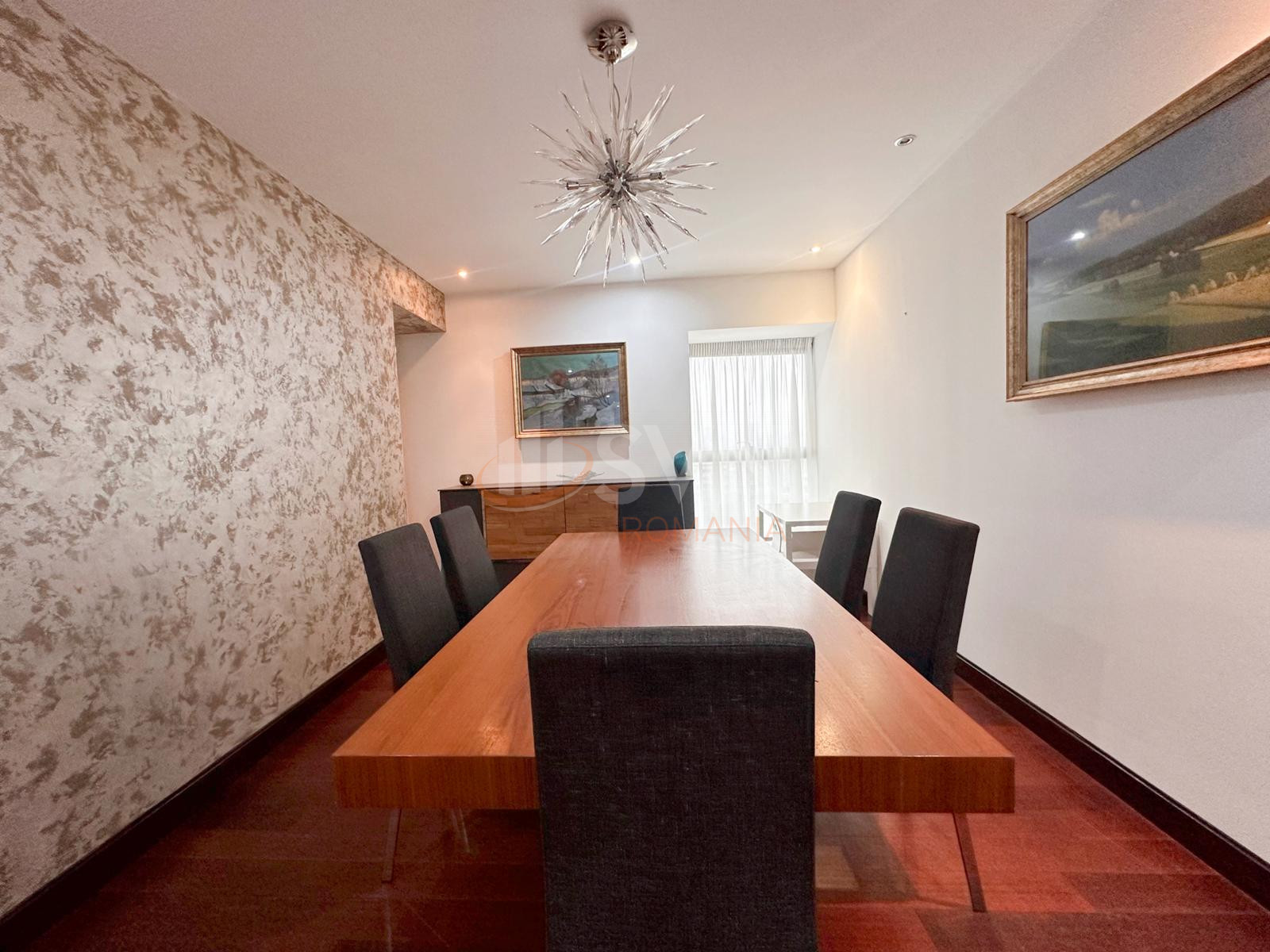 Living cu zona de dining, cu spatii vitrate, mari si acces in terasa.