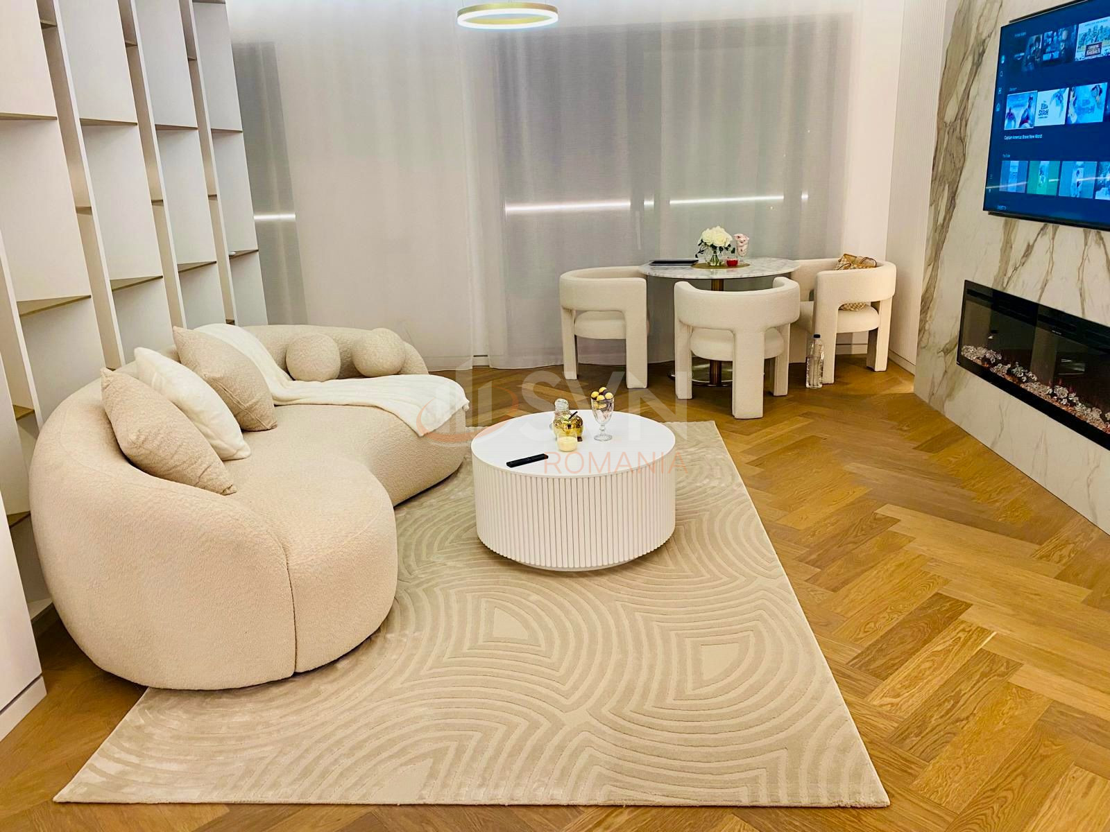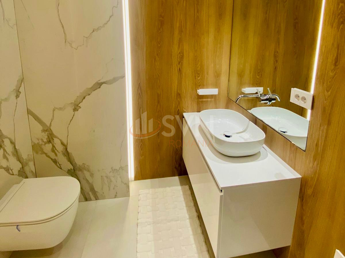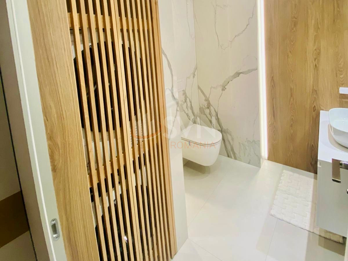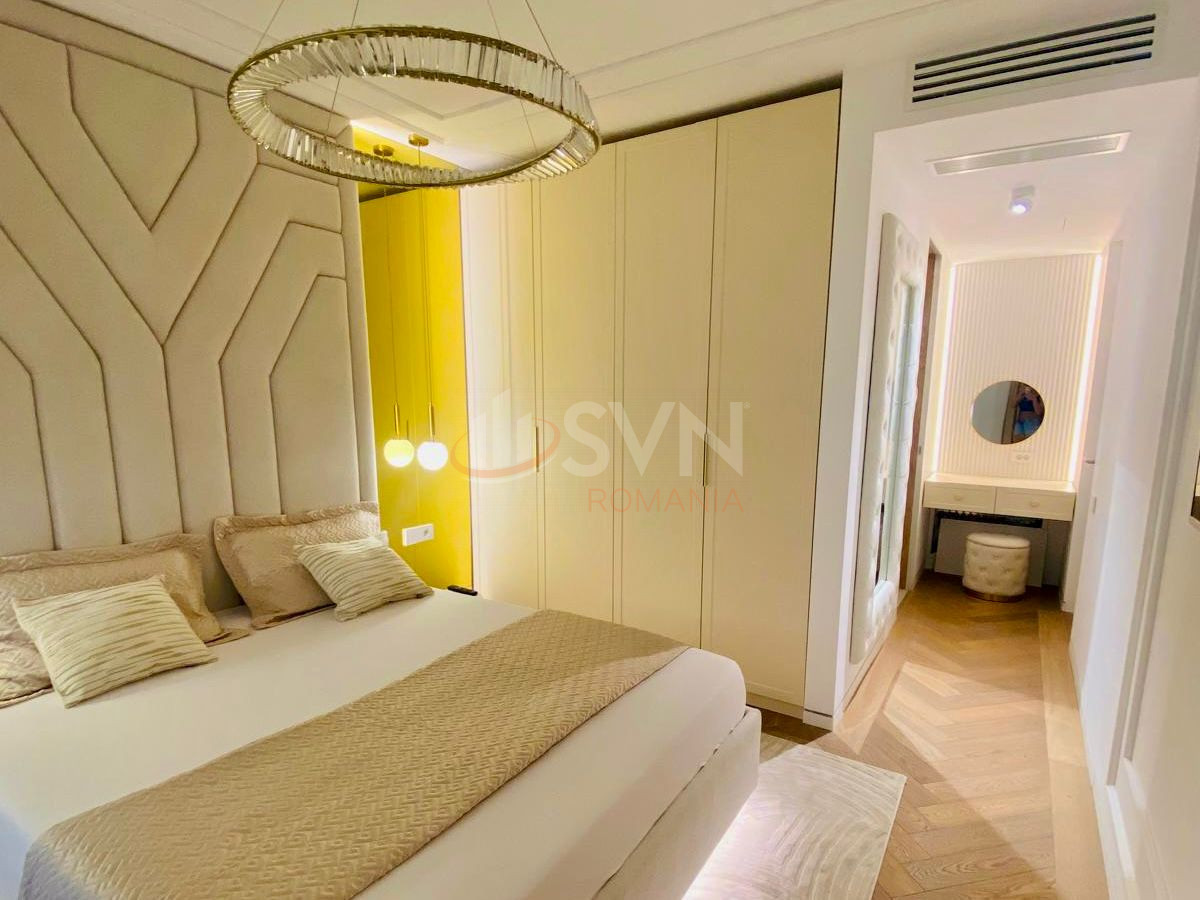 Locuinta este complet mobilata si utilata cu electrocasnice de top, dispune de bucatarie moderna cu masina de spalat vase, uscator automat de rufe, incalzire in pardoseala, sistem de ventilare si sistem smart home pentru control inteligent al temperaturii, iluminatului si securitatii. In pret este inclus si un loc de parcare subteran privat.