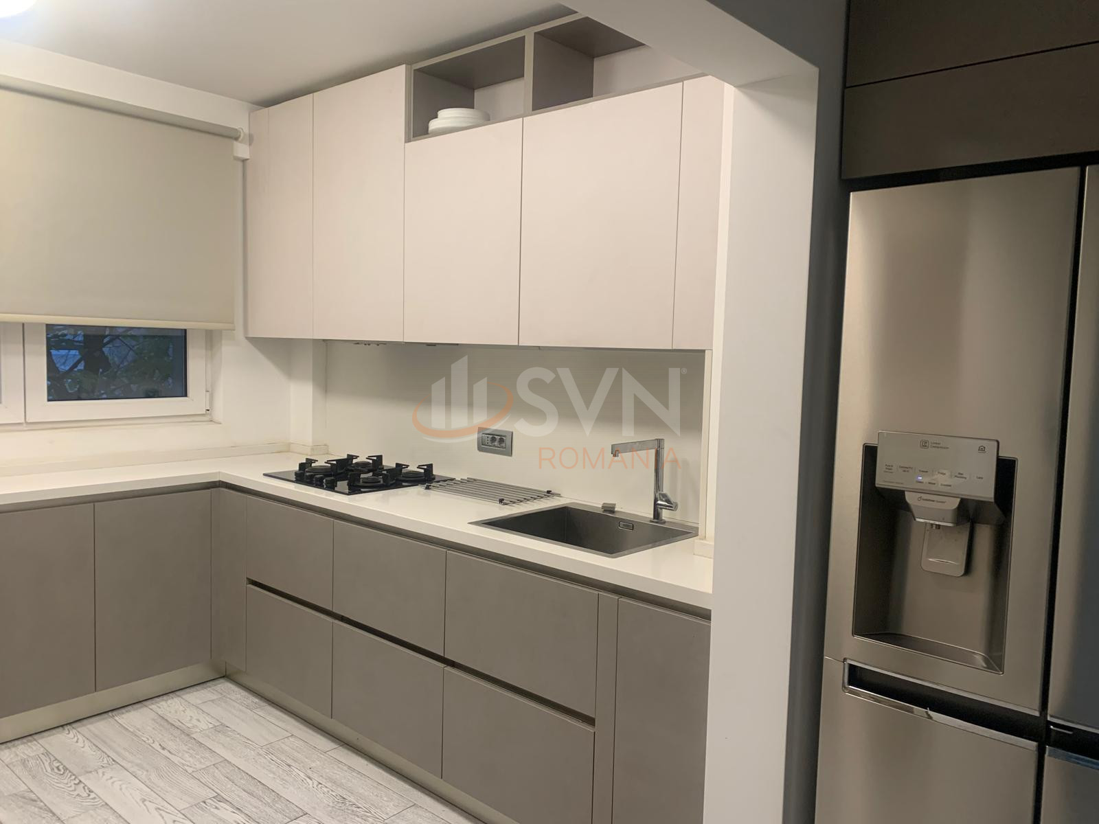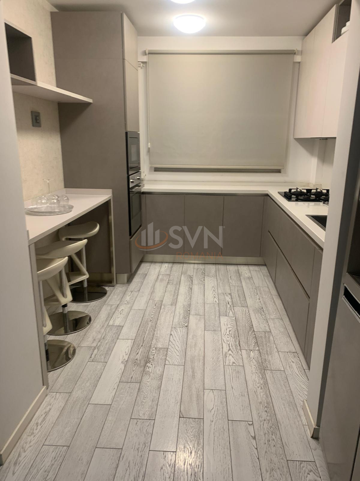 SVN Residentialist Pipera propune un apartament de lux recent renovat cu finisaje si dotari premium. Intregul mobilier tapetul si perdelele sunt realizate la comanda in Italia din lemn Rovere. Pardoseala este din parchet din lemn natural iar gresia si faianta sunt Porcelanosa. Bucataria este complet echipata cu aragaz cuptor cuptor cu microunde si masina de spalat vase Franke. Proprietatea dispune de frigider smart side by side LG masina de spalat rufe cu uscator LG si televizor Smart Full HD cu diagonala de 1.20 metri.