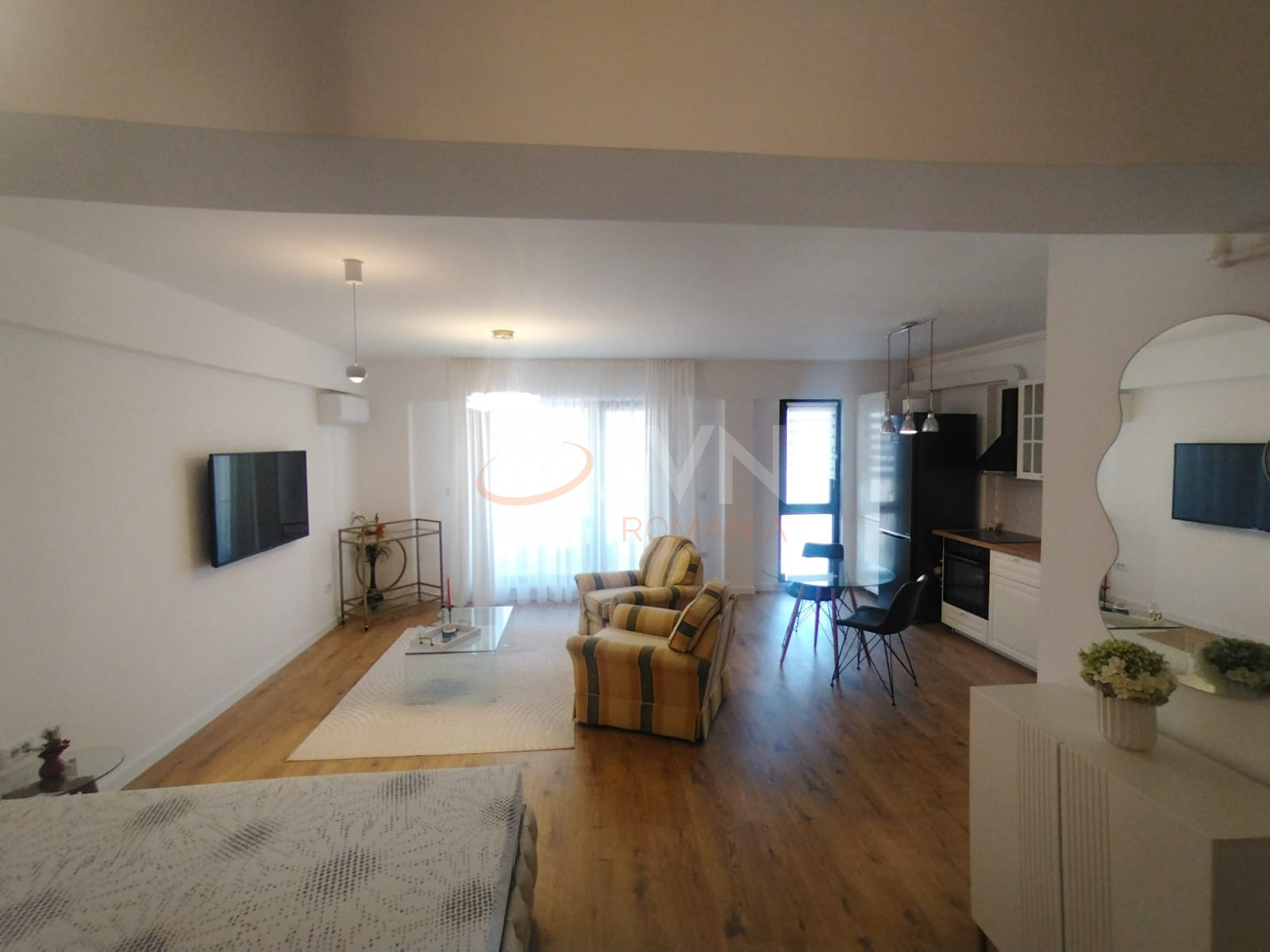 SVN Residentialist Pipera va ofera spre inchiriere un studio generos, cu o suprafata utila de 46 mp, situat in complexul rezidential Ivory, Pipera, intr-un imobil nou finalizat in anul 2025. Proprietatea este amplasata la etajul 3 din 3 si beneficiaza de centrala termica proprie pe gaz, incalzire prin pardoseala si contorizare separata pentru toate utilitatile. Studioul este complet mobilat si utilat, fiind dotat cu pat matrimonial cu lada de depozitare, masina de spalat rufe, masina de spalat vase si bucatarie complet echipata. Finisajele sunt moderne, iar compartimentarea este eficienta, oferind un spatiu aerisit si confortabil. Imobilul este nou, iar localizarea in zona Pipera asigura acces rapid catre zonele de birouri, centre comerciale si principalele artere de circulatie. Proprietatea este disponibila imediat.