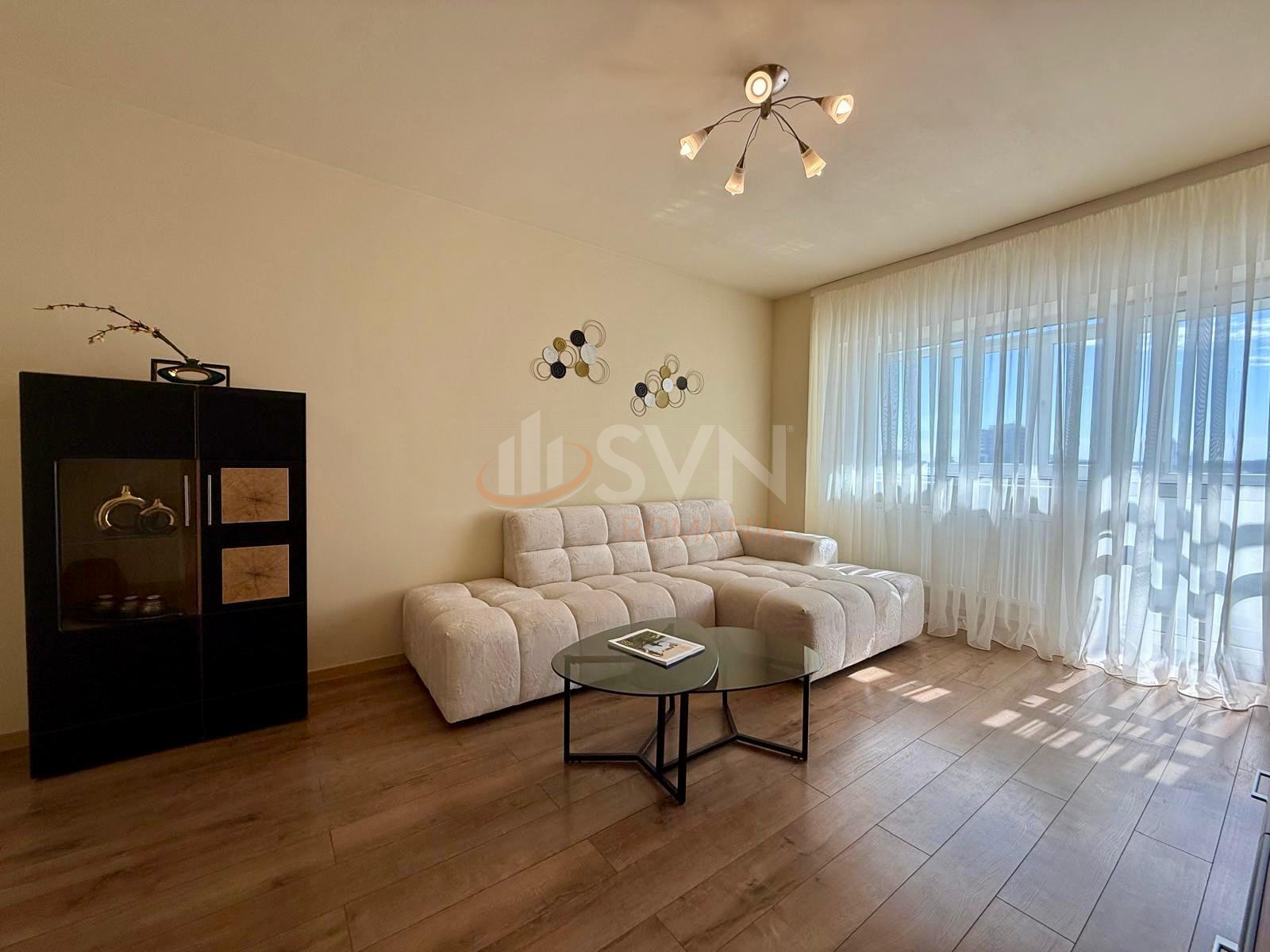 Apartamentul este decomandat, amplasat la etajul 9 din 11 intr-un bloc anvelopat, dotat cu doua lifturi.Acesta are o suprafata utila de 89 mp incluzand cele doua balcoane inchise.