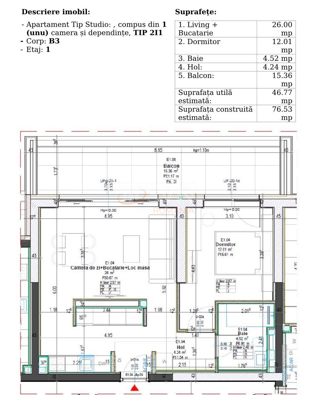 Suprafata utila totala: 62,13 mp (include terasa superba de 15,36 mp);