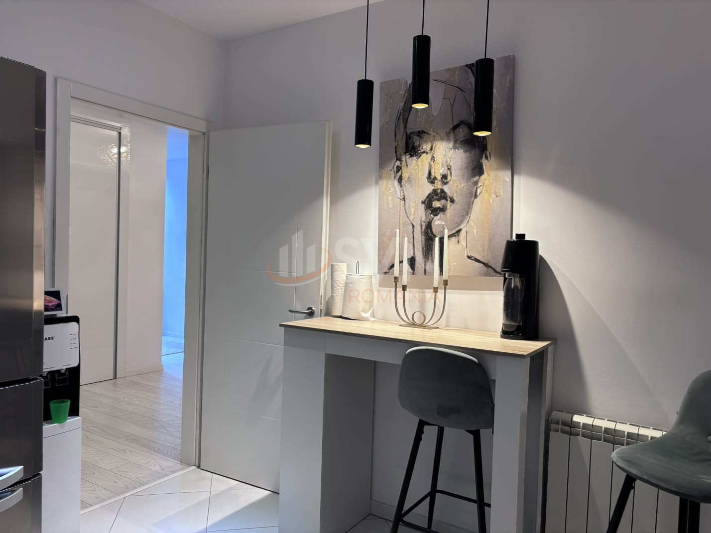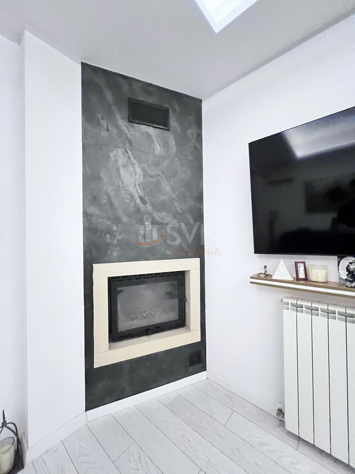 Zona de zi: Living cu semineu functional si bucatarie inchisa.