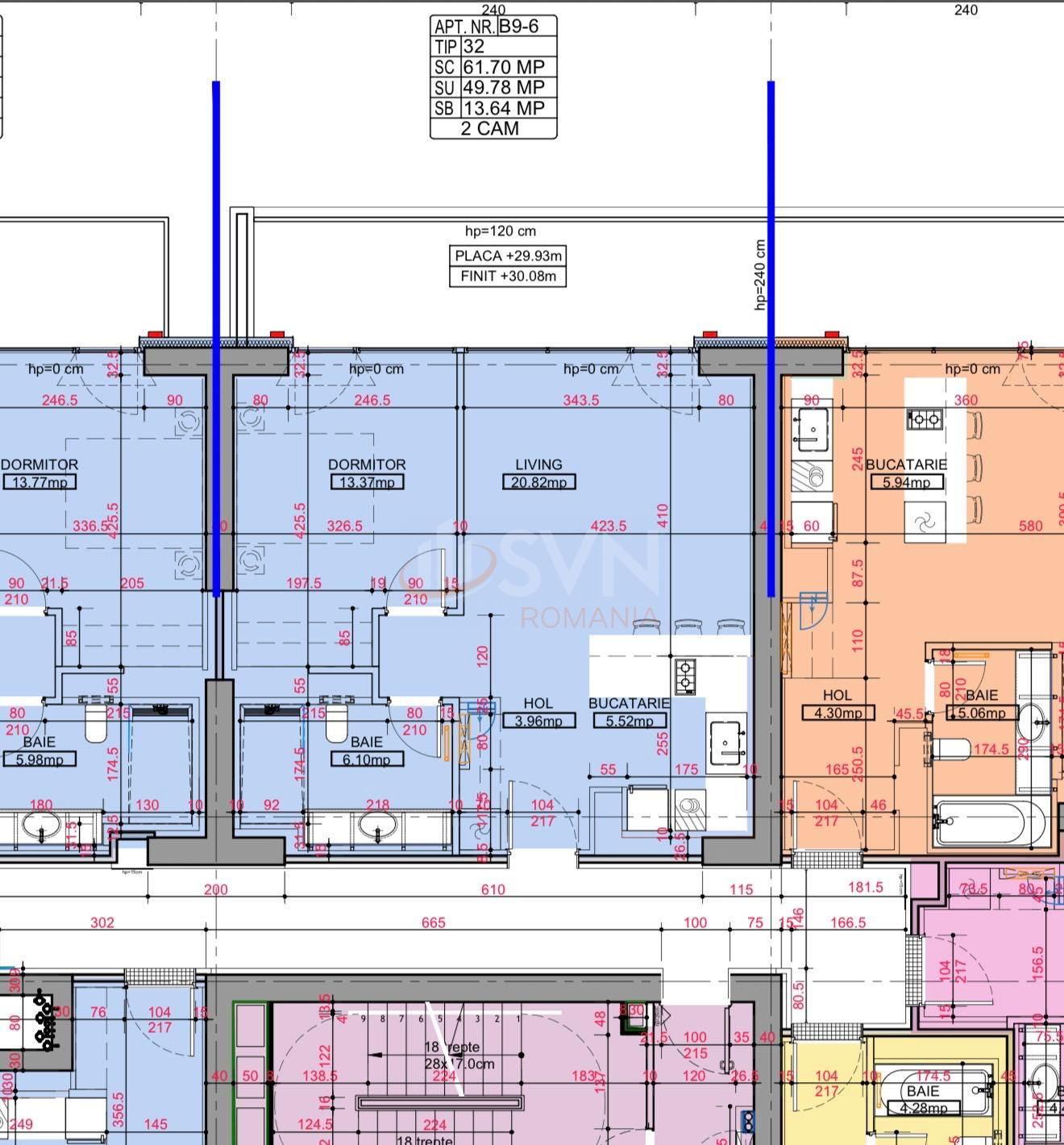 Apartamentul este situat la etajul 9 si are o suprafata construita de 62 mp, la care se adauga o terasa de 15 mp. Se vinde impreuna cu un loc de parcare, disponibil la pretul de 23.000 EUR + TVA.