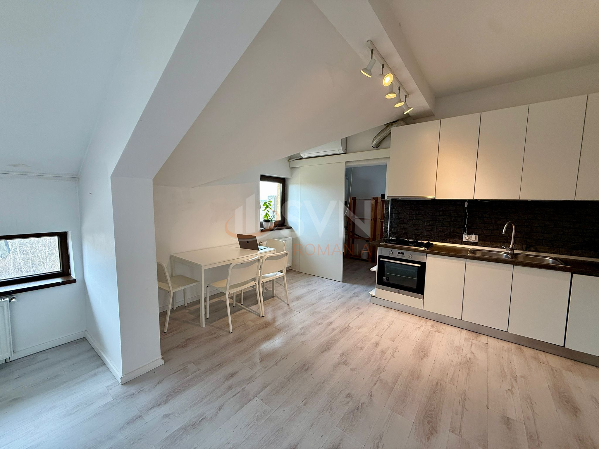 Apartamentul este amplasat la mansarda unui imobil cu regim redus de inaltime, oferind intimitate si o atmosfera aerisita, fiind foarte luminos datorita suprafetelor vitrate generoase. Locuinta beneficiaza de o compartimentare moderna, cu living open space si bucatarie, creand un spatiu amplu si primitor, ideal pentru relaxare sau socializare.