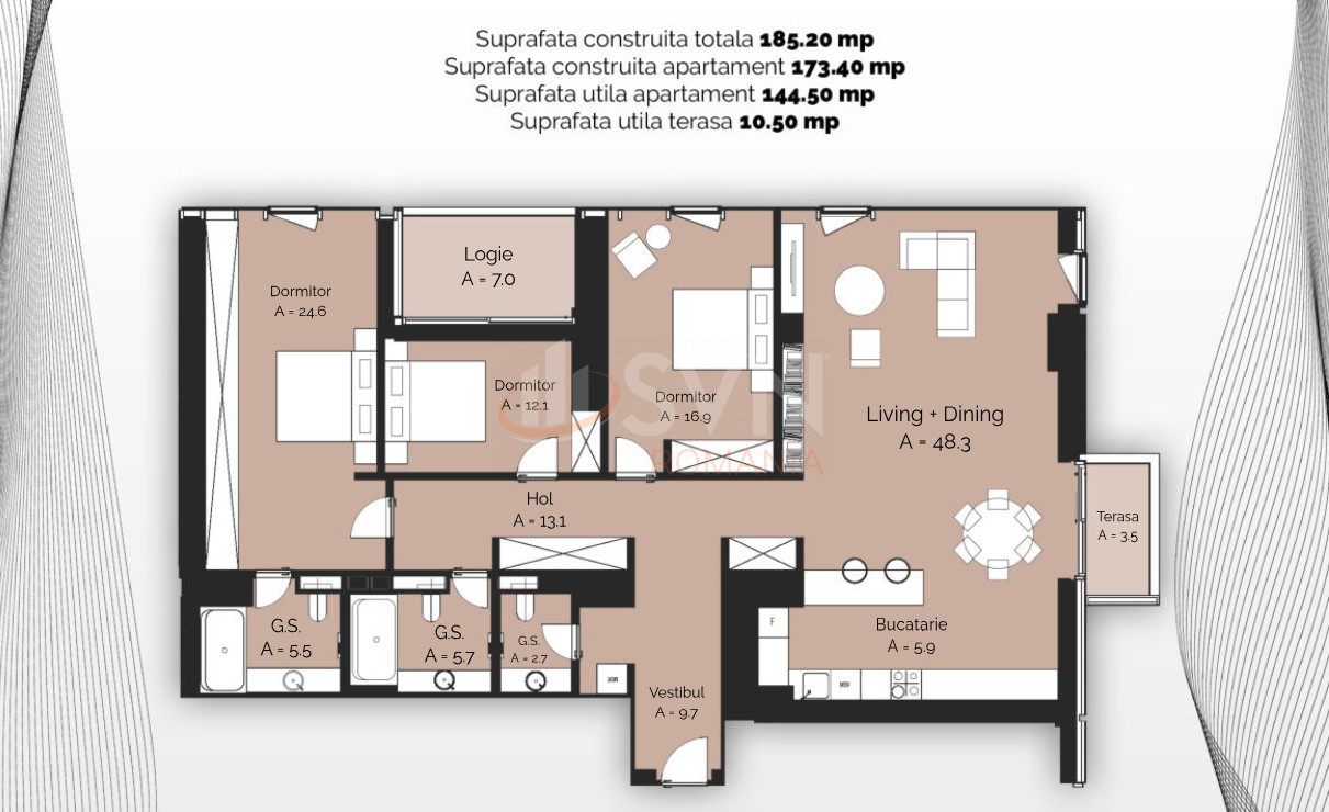 Locuinta se remarca prin finisaje de inalta calitate, design modern si terase ample, care completeaza experienta unei locuiri exclusiviste. Fiecare detaliu este gandit pentru confort, eleganta si functionalitate.