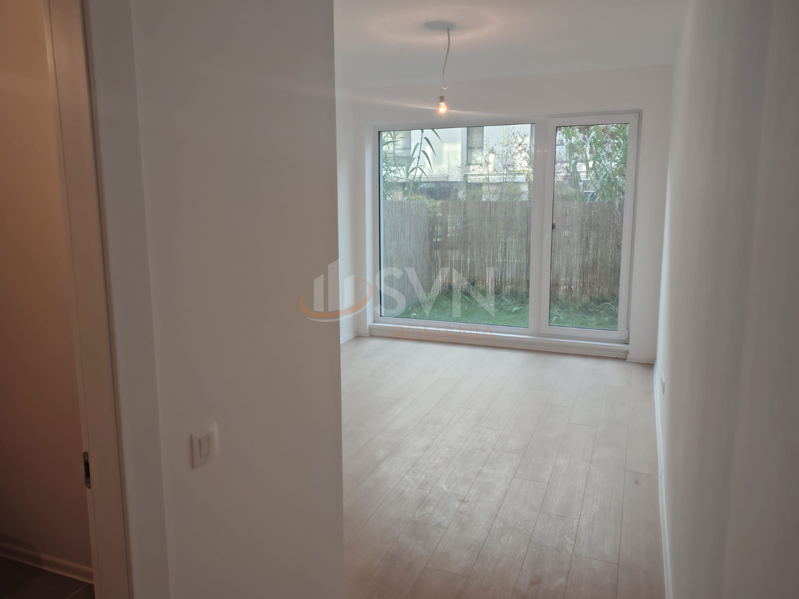 Ferestre cu geam tripan, profil PVC Salamander, model Green Evolution, cu deschidere oscilo-batanta, usi interioare celulare Pinum, culoare alba, cu feronerie cromata, iar usa de la intrare este metalica, acelasi brand, tot pe alb.