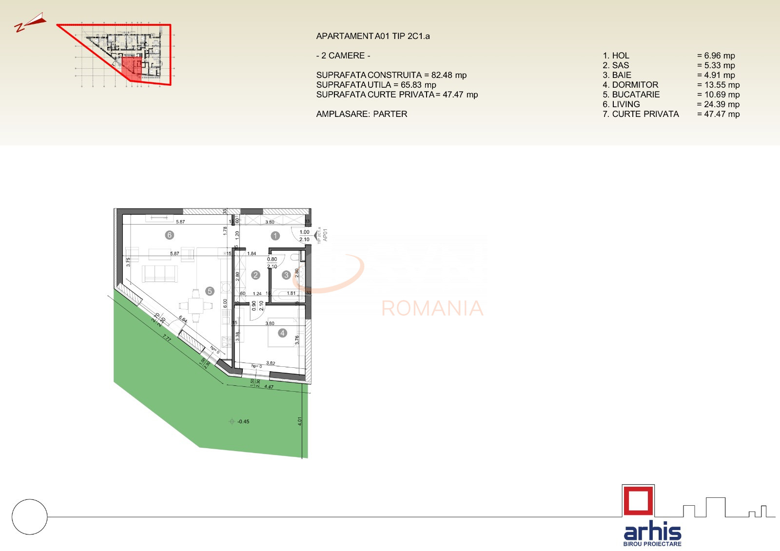 Apartamentul este amplasat la parter si beneficiaza de un avantaj rar intalnit in acest tip de proiecte, respectiv o curte privata impresionanta de 123mp, ideala pentru relaxare, zona verde, dining exterior sau activitati in aer liber. Proprietatea ofera senzatia de locuinta tip casa, pastrand in acelasi timp beneficiile unui apartament intr un ansamblu rezidential bine organizat.