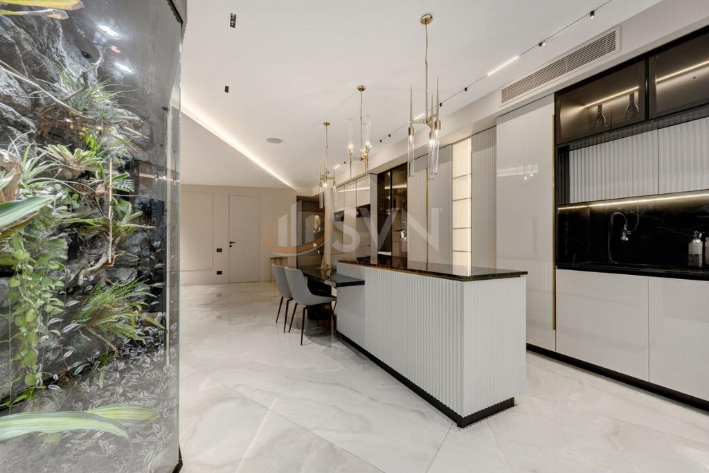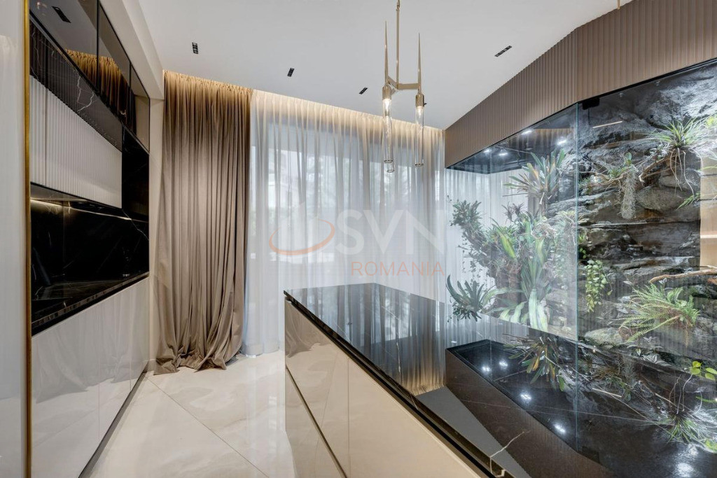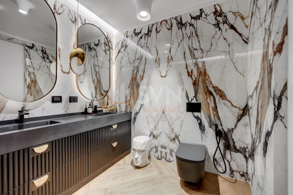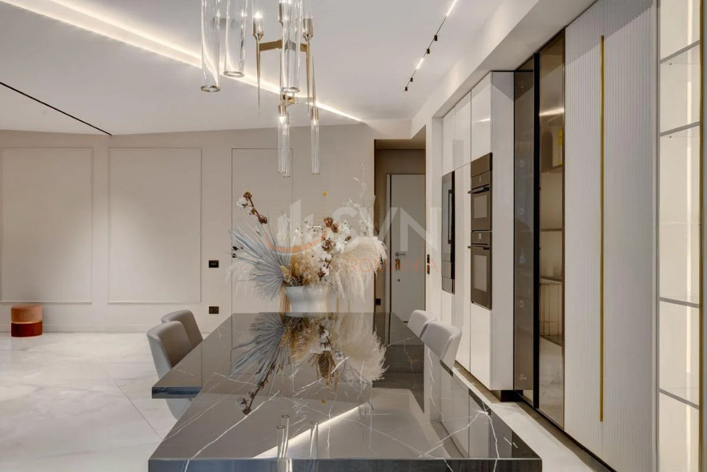 Apartamentul a fost complet personalizat, toate finisajele standard fiind inlocuite cu materiale premium, atent selectionate, de cea mai buna calitate. Proprietatea este dotata cu sistem smart home, care permite controlul iluminatului, climatizarii si altor functii esentiale, oferind un nivel superior de confort, eficienta si siguranta.