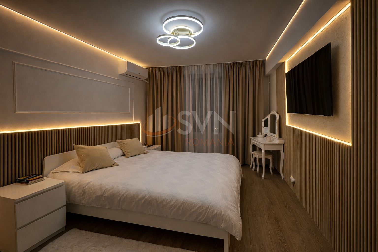 SVN Residentialist va propune spre vanzare un apartament spatios si renovat recent, in zona Mega Mall, ce dispune de un balcon de 14,35 mp si o boxa la subsol de 3,38 mp.
