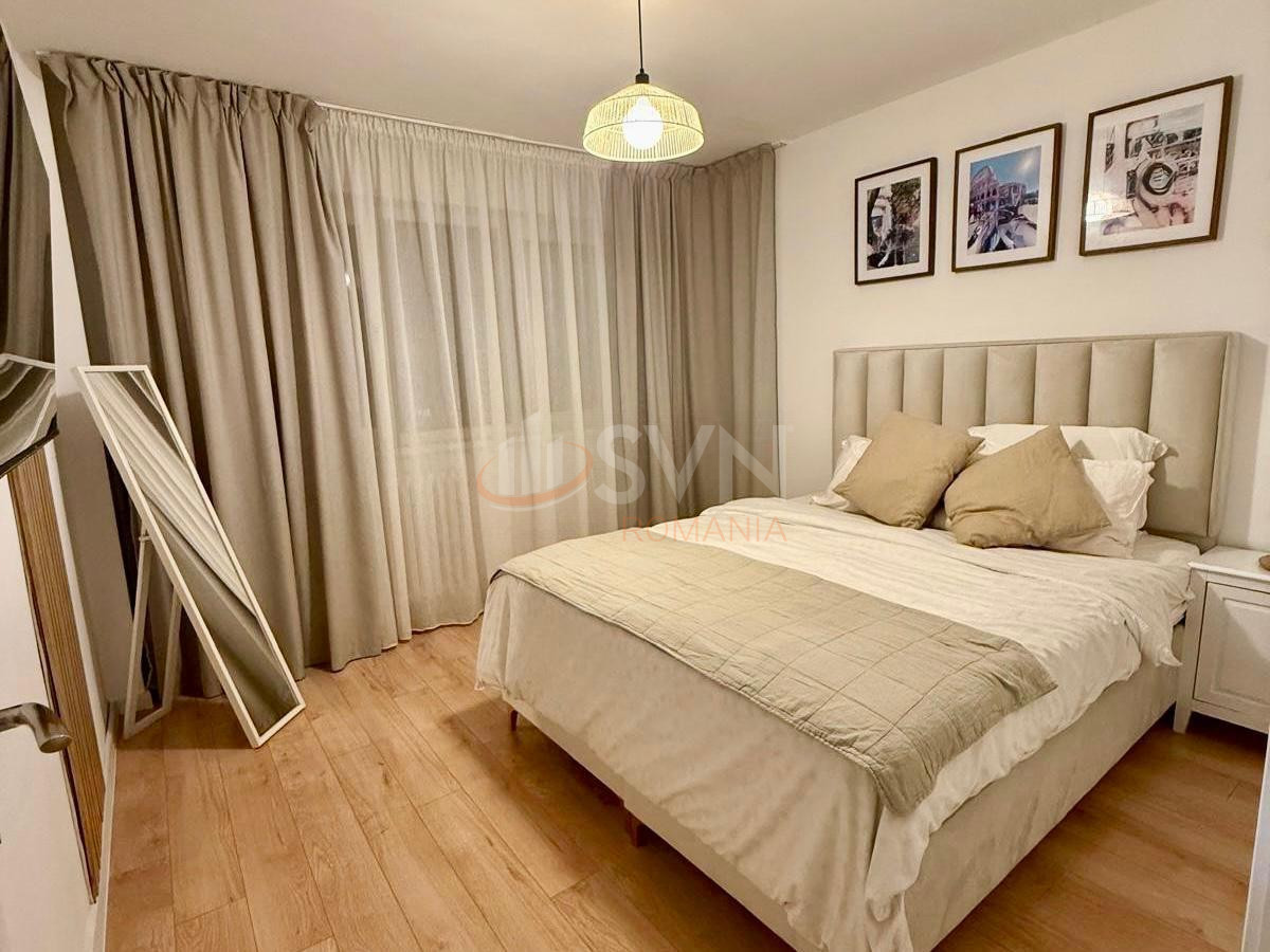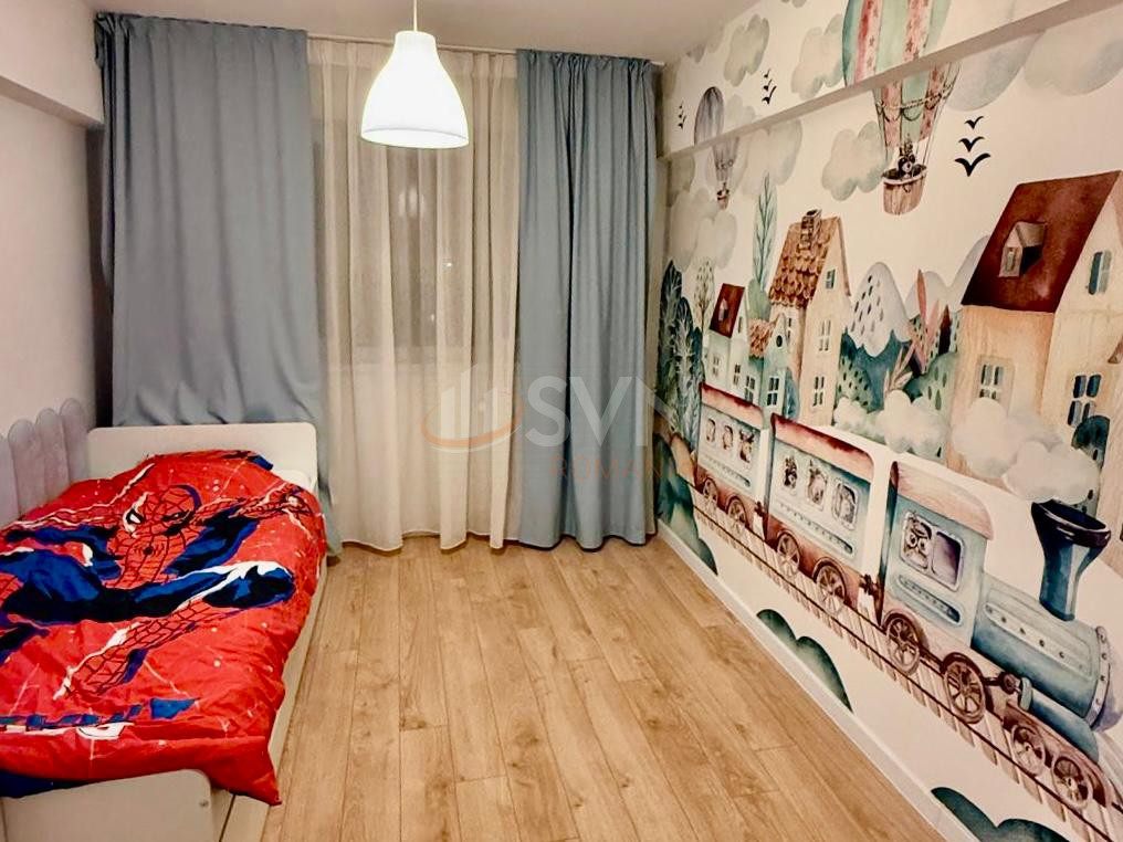 Dormitorul matrimonial dispune de pat cu lada de depozitare, saltea cu spuma memory si TV, iar dormitorul secundar este mobilat ideal pentru copii, birou sau oaspeti.