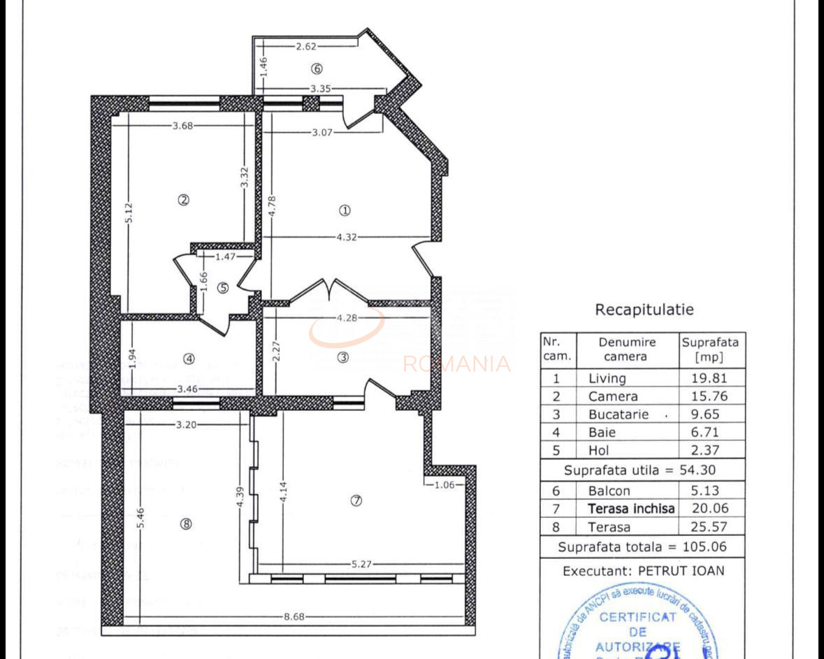 Apartamentul se poate transforma in 3 camere prin utlizarea terasei inchise de 20 mp ca si birou sau camera separata.