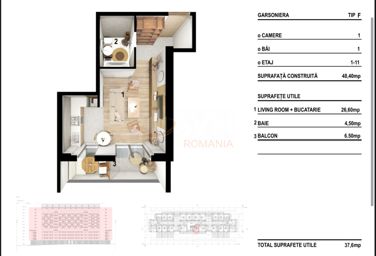 SVN Residentialist va propune spre vanzare un studio, ideal pentru locuit sau investitie, situat intr-un complex rezidential modern aflat in dezvoltare, cu finalizare in anul 2026. Cu o suprafata utila de 37,60 mp din care un balcon de 6,50 mp, aceasta locuinta ofera confort, eficienta si acces la facilitati premium.