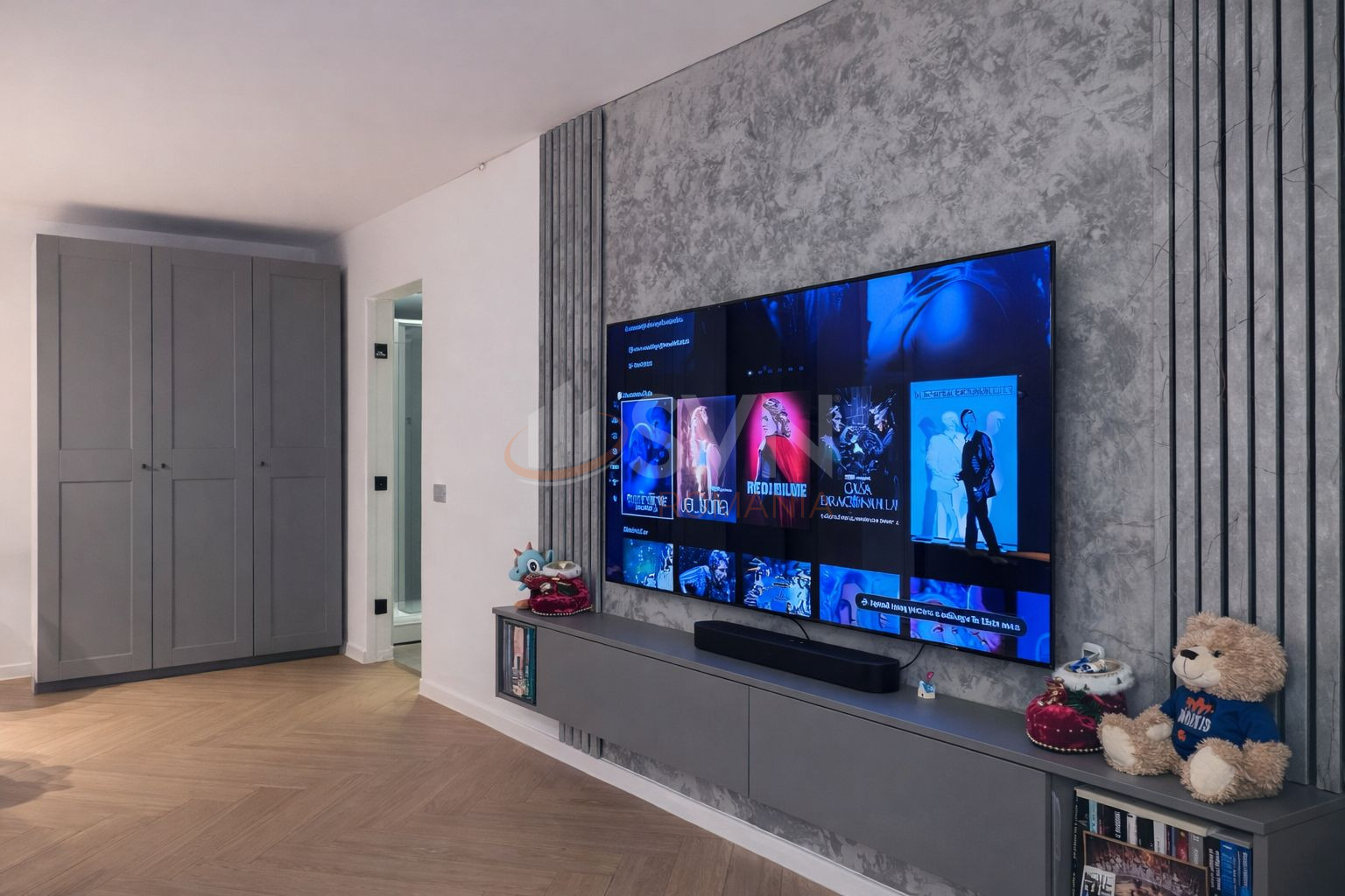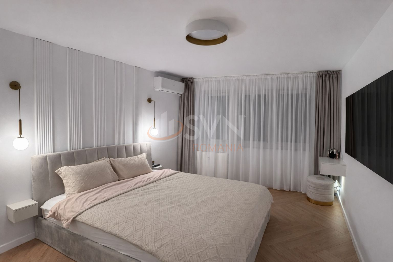 Mobilierul este realizat in mare parte pe comanda, oferind functionalitate si un design modern. Electrocasnicele si electronicele sunt de calitate si se afla inca in garantie, precum televizoare LG OLED, plita Electrolux, masina de spalat Samsung SmartThings. Anumite electrocasnice mici nu vor ramane in apartament, precum espressorul de cafea, air fryerul sau aspiratorul.