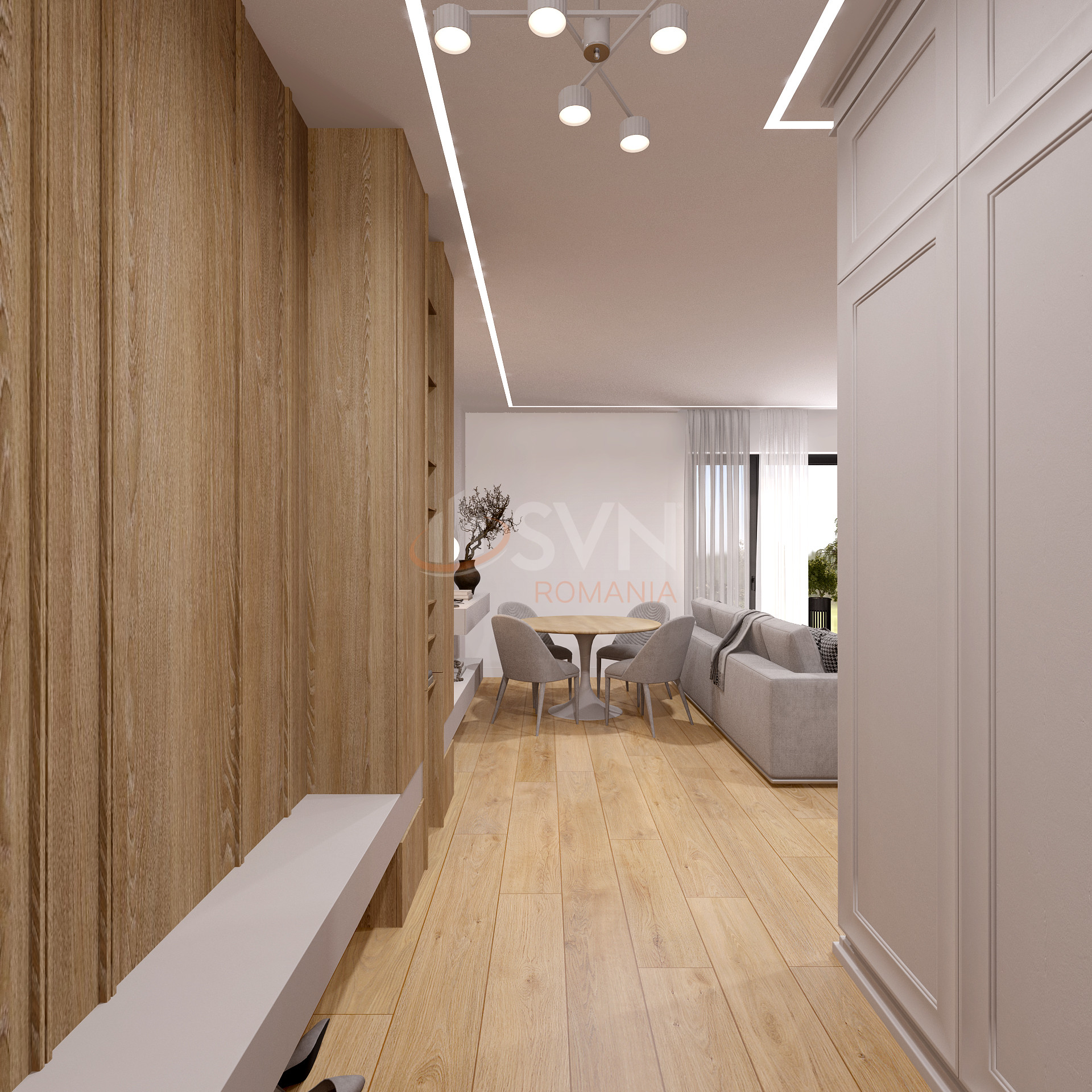 Finisaje premium: parchet triplu stratificat, gresie + faianta din Spania, incalzire in pardoseala cu pompa de caldura, tamplarie aluminiu cu geam tripan, usi interioare, aer conditionat.