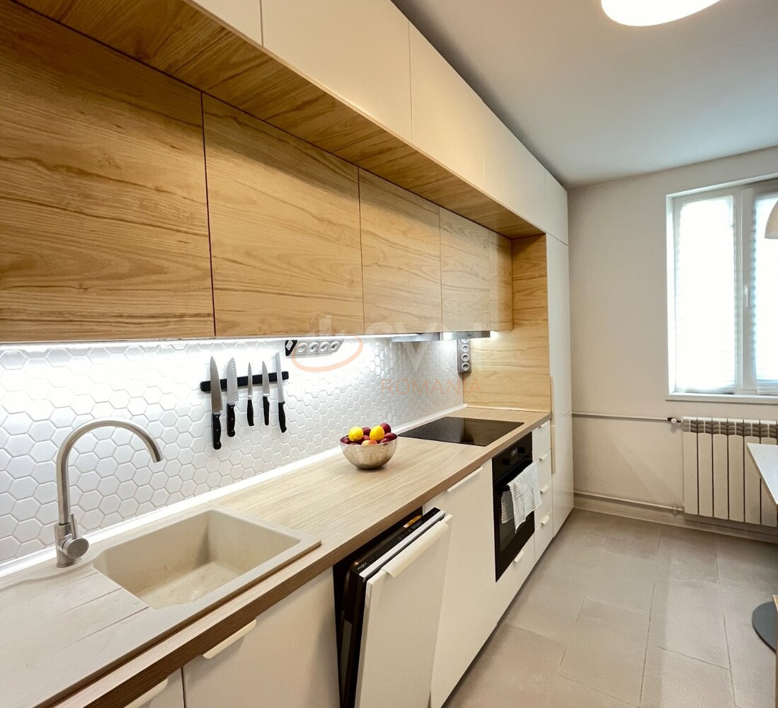 Proprietatea a fost renovata complet, cu atentie la detalii si materiale de calitate: instalatii electrice refacute integral, cablu de cupru de 2,5 mm, instalatii de apa si termoficare realizate cu teava de cupru, calorifere noi din aluminiu si geamuri tripan la toate camerele pentru un plus de confort termic si fonic.