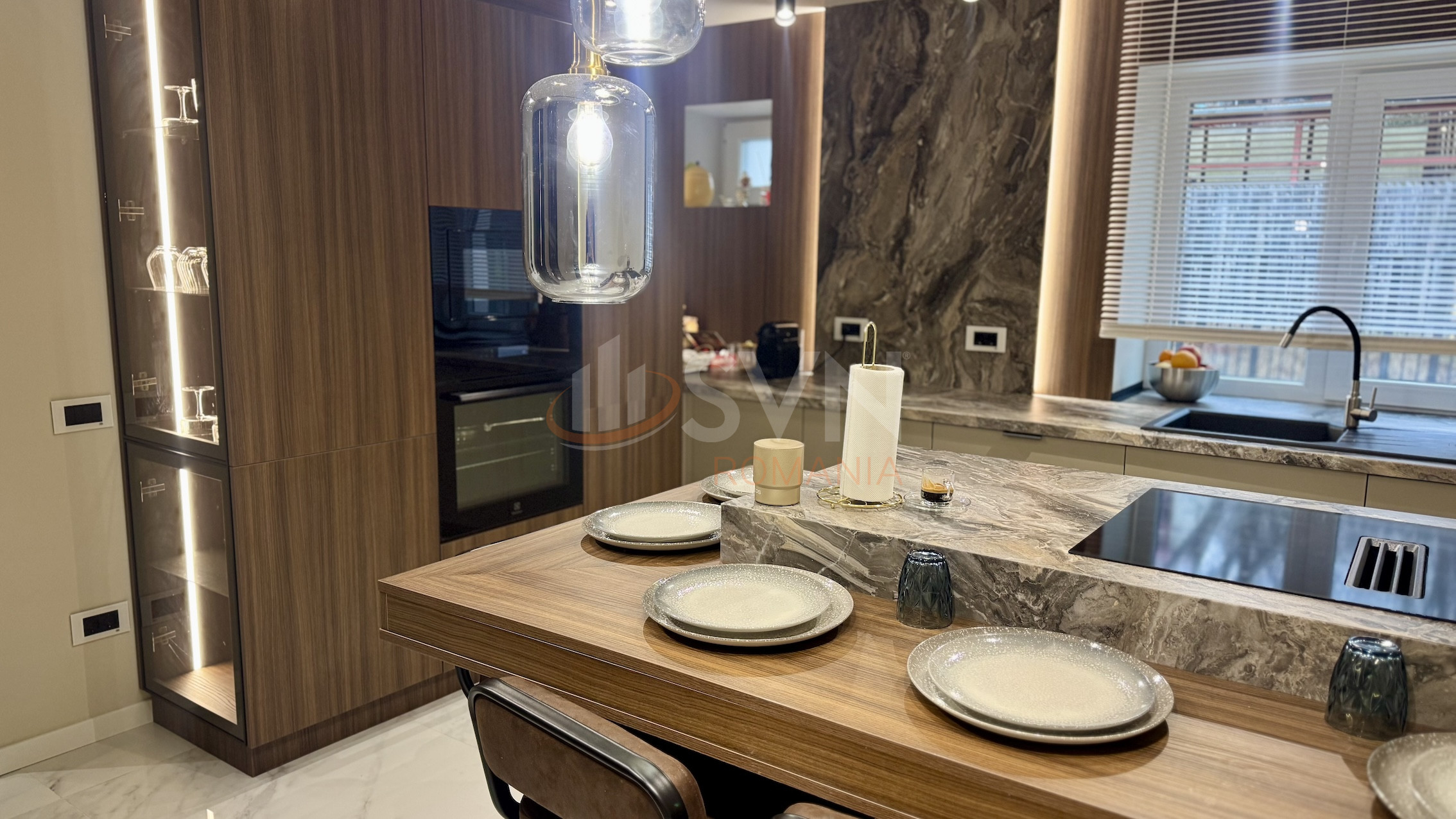 Zona de relaxare este spectaculosa: piscina interioara incalzita, jacuzzi, fantani, lumini ambientale, spatiu fitness si deschidere totala catre curte prin zone vitrate glisante. La interior, fiecare detaliu a fost gandit pentru confort: dormitoare cu baie proprie, bucatarie complet utilata si un etaj dedicat entertainment-ului cu bar, poker room si cinema corner.