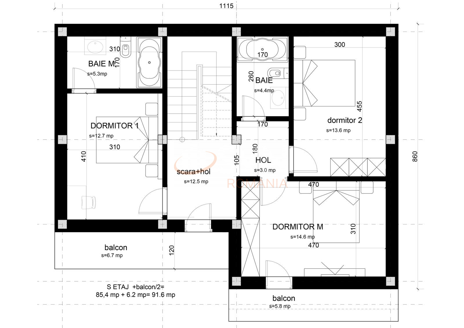 Etajul reprezinta zona de odihna si cuprinde: