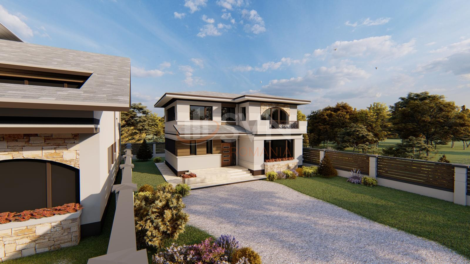 Vila este amplasata pe un teren de 500 mp, foarte bine pozitionat, oferind o curte generoasa, ideala pentru relaxare, joaca sau amenajarea unei zone verzi personalizate.
