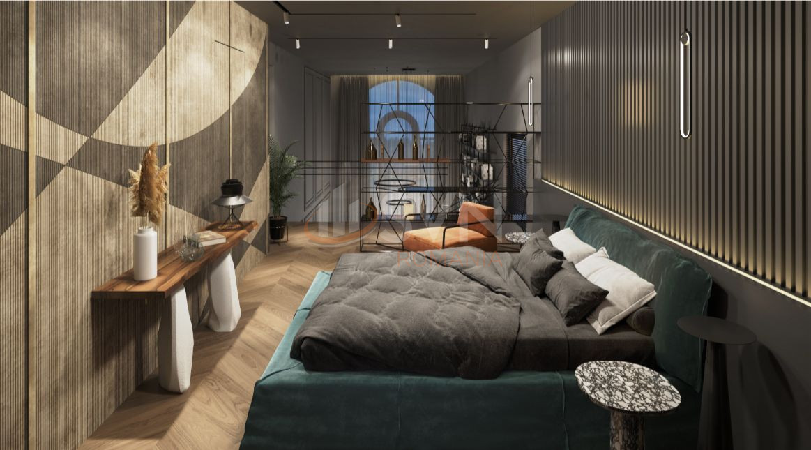 Vila dispune de 270 mp utili, cu un living spectaculos de 74 mp, bucatarie open space cu zona de dining, 6 camere, 4 bai, si un family room generos de 25,6 mp perfect pentru timp de calitate in familie. La etaj regasim 3 dormitoare spatioase si luminoase, fiecare cu un design aparte. In plus, un spatiu dedicat intimitatii include un dormitor de 20,8 mp, un dressing de 5,4 mp si o baie de 8,4 mp.