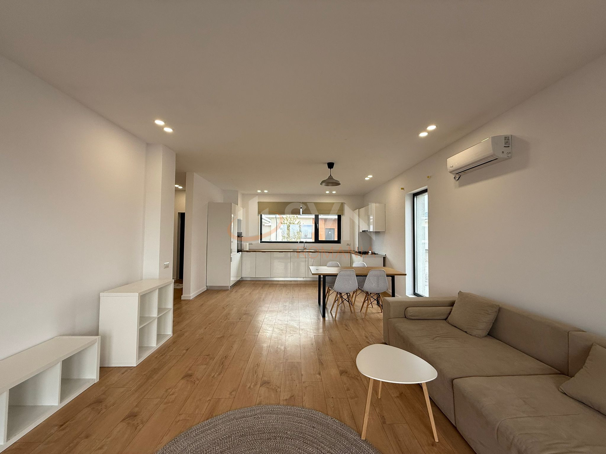 Un living generos de 37 mp cu bucatarie open space si zona de dining , din care se face iesirea pe o terasa amenajata, o baie cu dus si un hol ce deserveste dormitorului, baii si celei de a treia camera facand aceasta casa ideala pentru o familie fiind situata intr-o comunitate cu acces securizat.