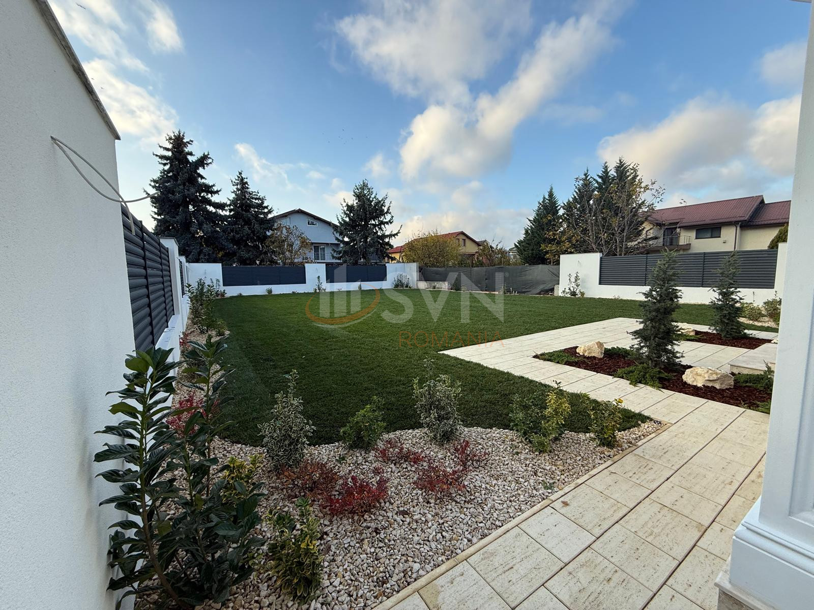 Curte complet amenajata, cu spatiu verde, alei si zona de relaxare