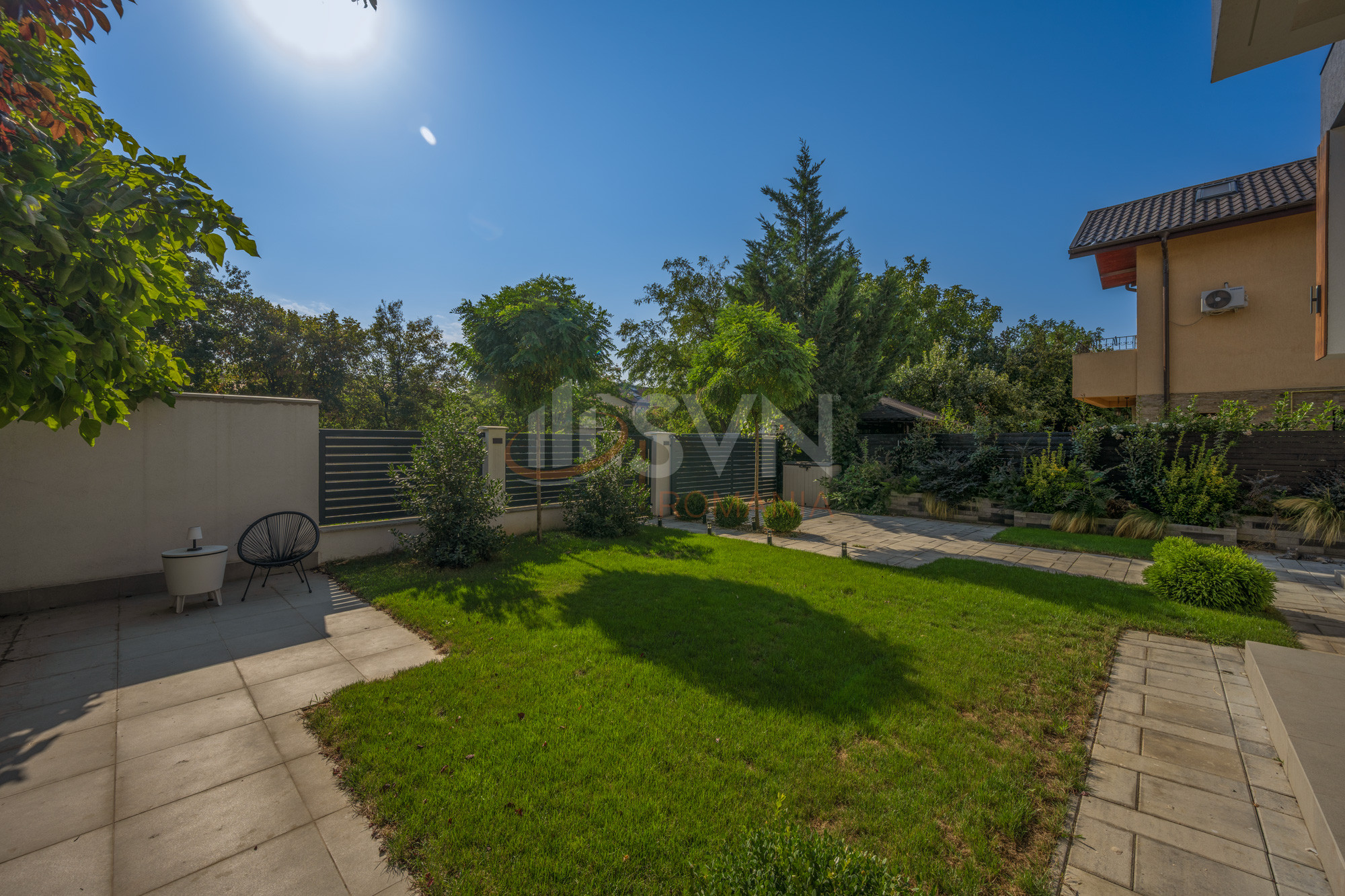Vila este noua, finalizata, construita cu materiale de calitate, pregatita pentru a fi locuita imediat. Spatiul exterior cuprinde o gradina amenajata, loc de joaca pentru copii sau zona de relaxare.
