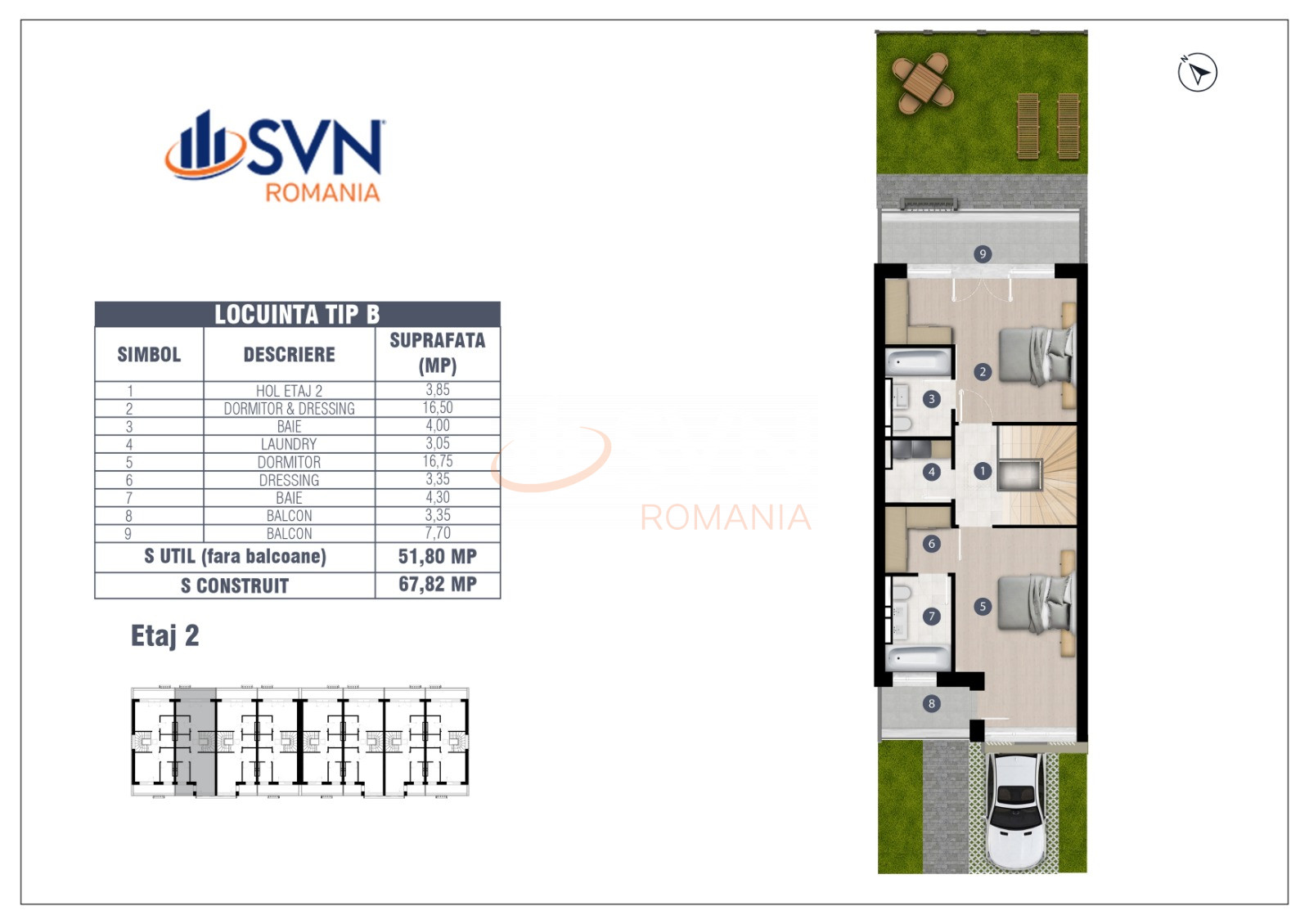 La etajul 2, compartimentarea urmeaza aceeasi logica a confortului si spatiului bine optimizat, oferind camere suplimentare ideale pentru birou, zona de relaxare sau spatiu pentru hobby-uri, completate de o baie moderna si spatii de depozitare generoase.