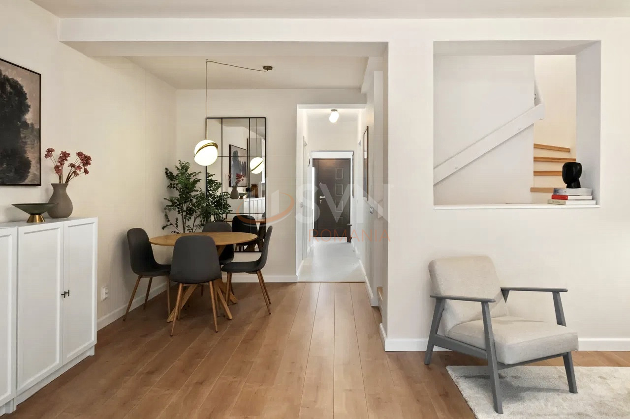 Proprietatea a fost complet renovata, cu atentie la detalii si este oferita spre vanzare complet mobilata si utilata, gata pentru mutare. Compartimentarea este eficienta si functionala, incluzand patru dormitoare, un living generos cu zona de dining, bucatarie, trei bai, precum si spatii de depozitare bine organizate.