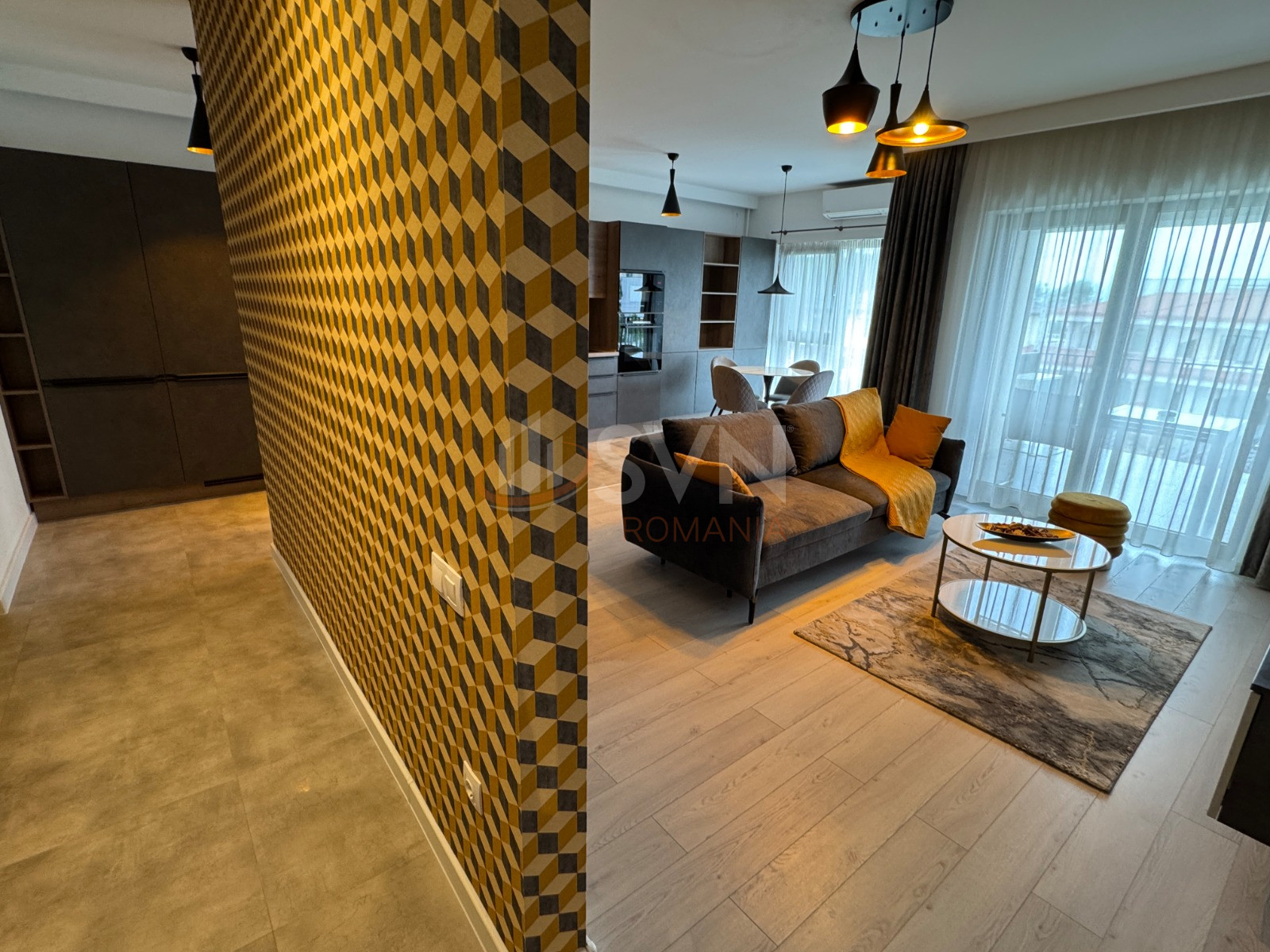SVN Residentialist Pipera va propune spre inchiriere un apartament generos de 2 camere cu multiple spatii de depozitare, avand o suprafata interioara de 61,5 mp utili plus terasa tip logie de 7,7 mp. Locuinta este mobilata si utilata premium, cu atentie la detalii, si este situata in complexul Tunari Resort Residence, finalizat la sfarsitul anului 2021, format din 3 blocuri cu regim redus de inaltime (3 etaje).