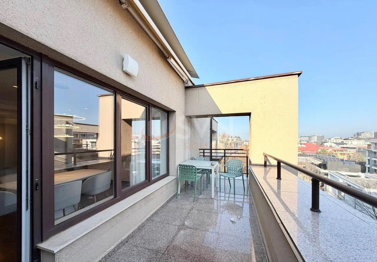 SVN Residentialist Pipera offers for rent a premium apartment, fully furnished and equipped, recently renovated, located on Soseaua Nordului, directly across from Parcul Herastrau, on the top floor of a high-quality building.