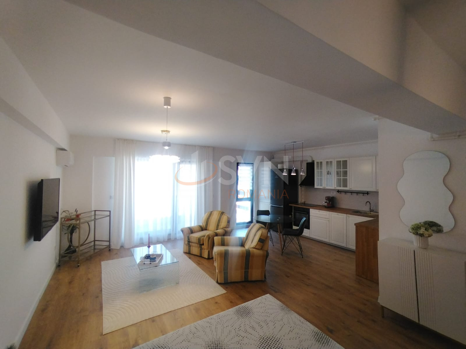 SVN Residentialist Pipera offers for rent a spacious studio with a usable area of 45 sqm, located in the Ivory residential complex, Pipera, in a newly built building completed in 2025. The property is situated on the 3rd floor out of 3 and benefits from its own gas central heating system, underfloor heating and individual metering for all utilities. The studio is fully furnished and equipped, featuring a double bed with storage space, washing machine, dishwasher and a fully equipped kitchen. The finishes are modern, and the layout is efficient, providing a bright and comfortable living space. The building is new, and the Pipera location offers quick access to office areas, shopping centers and main roads. The property is available immediately.