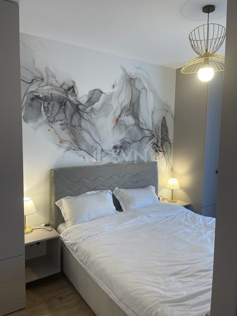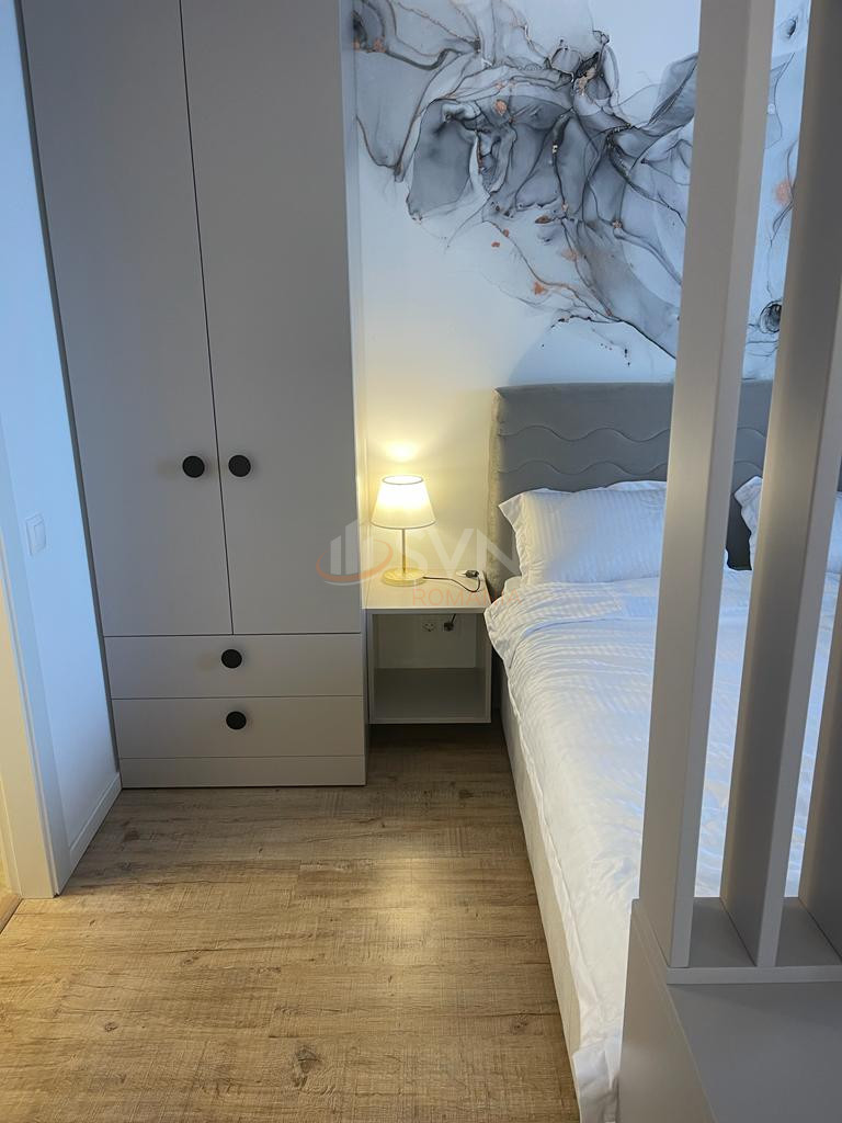 Studio-ul este amenajat modern si se inchiriaza complet mobilat si utilat. Dispune de aer conditionat, centrala termica proprie cu incalzire prin pardoseala, TV smart, bucatarie complet echipata (cuptor electric, plita, masina de spalat vase, combina frigorifica incorporata, cuptor cu microunde), masina de spalat rufe si uscator. Spatiile de depozitare sunt eficient integrate, iar patul matrimonial 160x200 asigura un confort sporit.