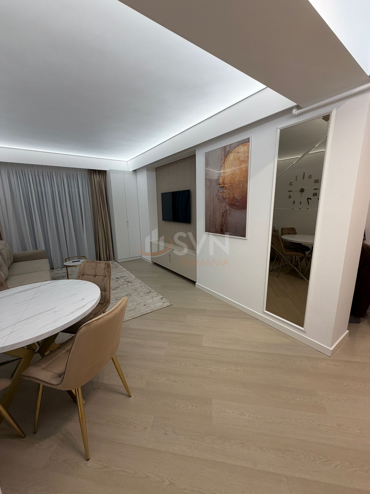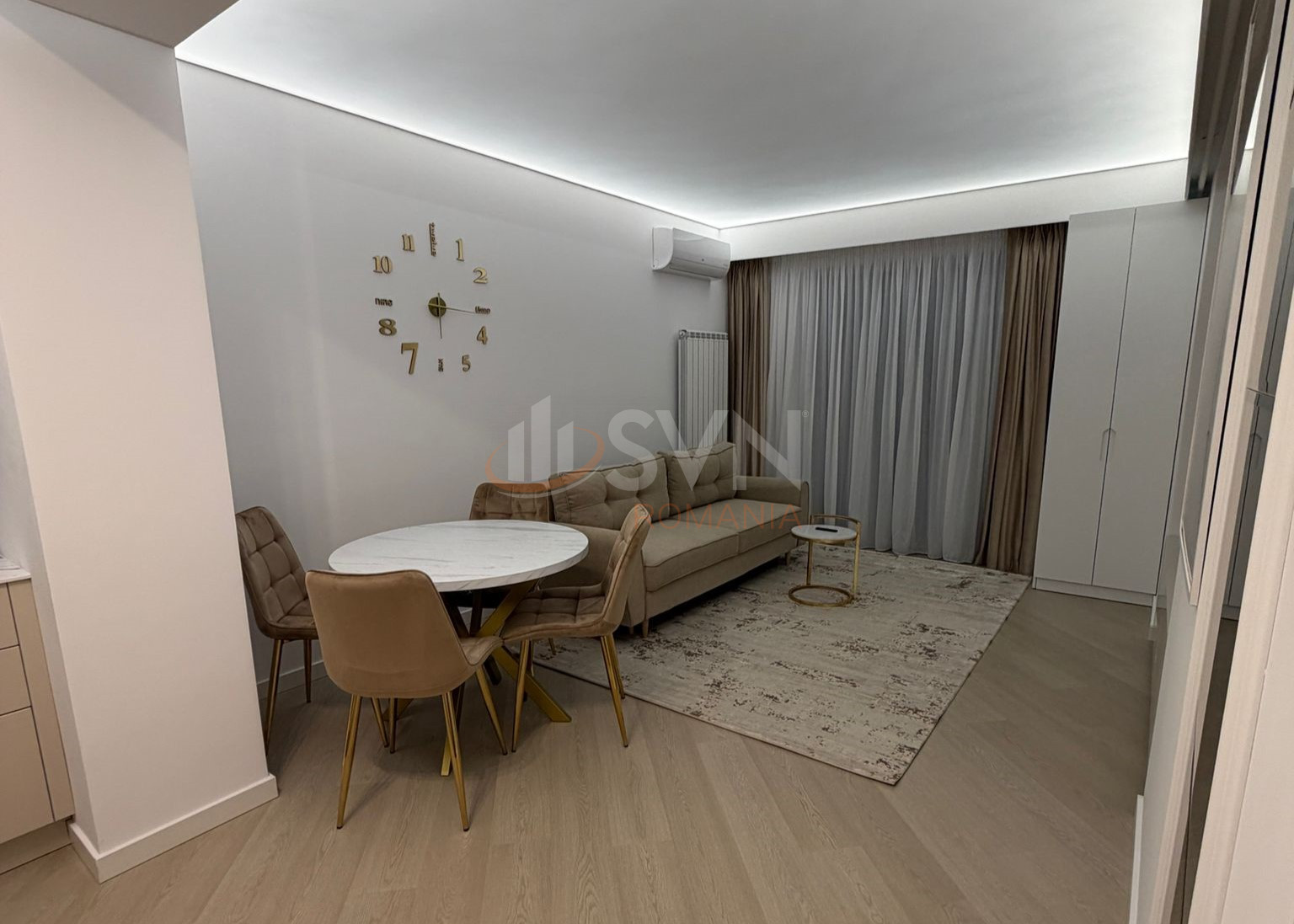 SVN Residentialist Pipera offers for rent a 2-room apartment located in Cortina North Complex, Phase 3. The apartment is on the 7th floor of 10 and enjoys unobstructed exterior views. It is fully furnished and equipped, available for its first rental, with everything brand new. The unit features its own heating system, two air conditioning units, and modern finishes. The complex provides easy access to key points of interest in the northern area of Bucharest. SVN Residentialist Pipera looks forward to showing you the property.