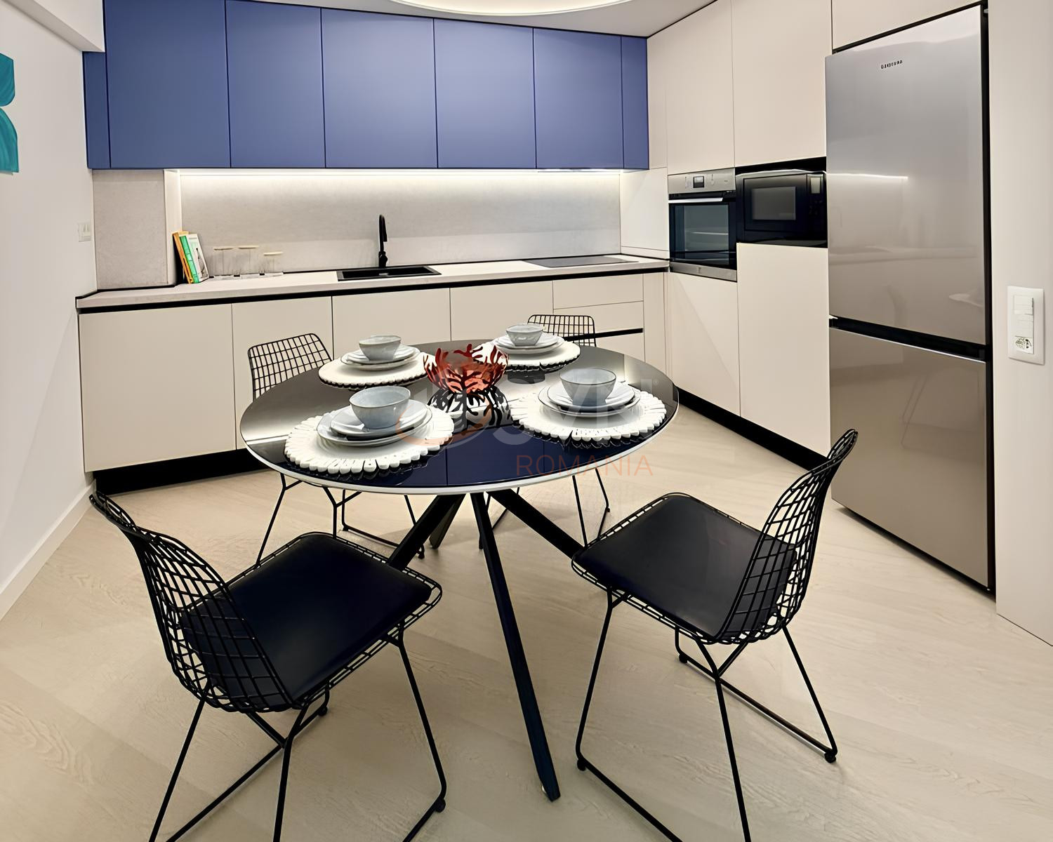 Designul interior este contemporan, cu finisaje de calitate superioara, iluminat ambiental atent ales si spatii de depozitare inteligent integrate.