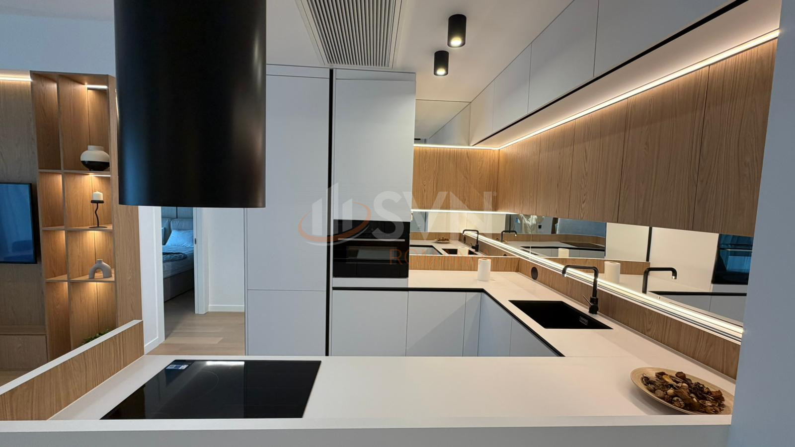 Zona de zi este compusă dintr-un living generos de 23 mp, integrat elegant cu bucătăria open-space de 6,3 mp, creând un spațiu aerisit și luminos, perfect pentru momentele de relaxare sau pentru întâlniri într-un cadru intim și sofisticat. Conceptul open-space oferă fluiditate și funcționalitate, punând în valoare fiecare metru pătrat.