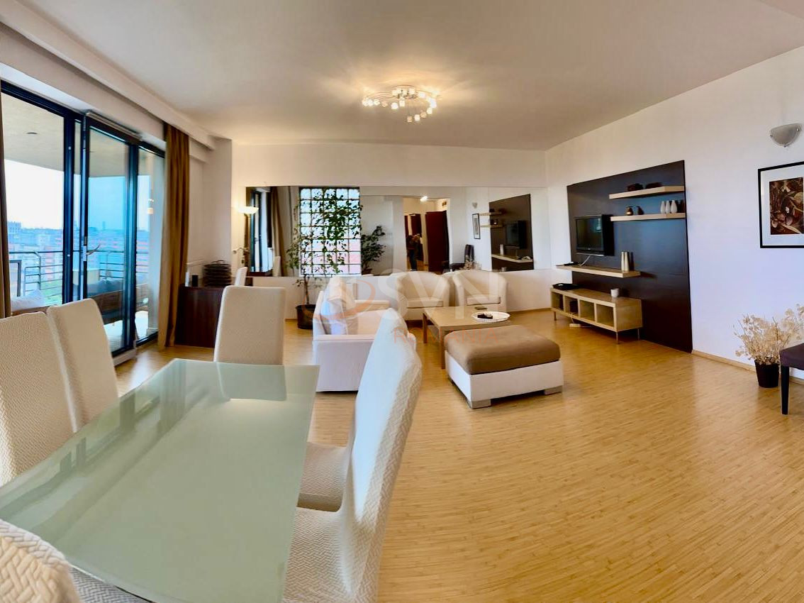 Apartamentul este situat la etajul 11 din 13, intr-un bloc construit in 2006, decomandat, cu o suprafata utila de 121.17 mp si 2 balcoane si o terasa care au suprafata totala de 18.25 mp.