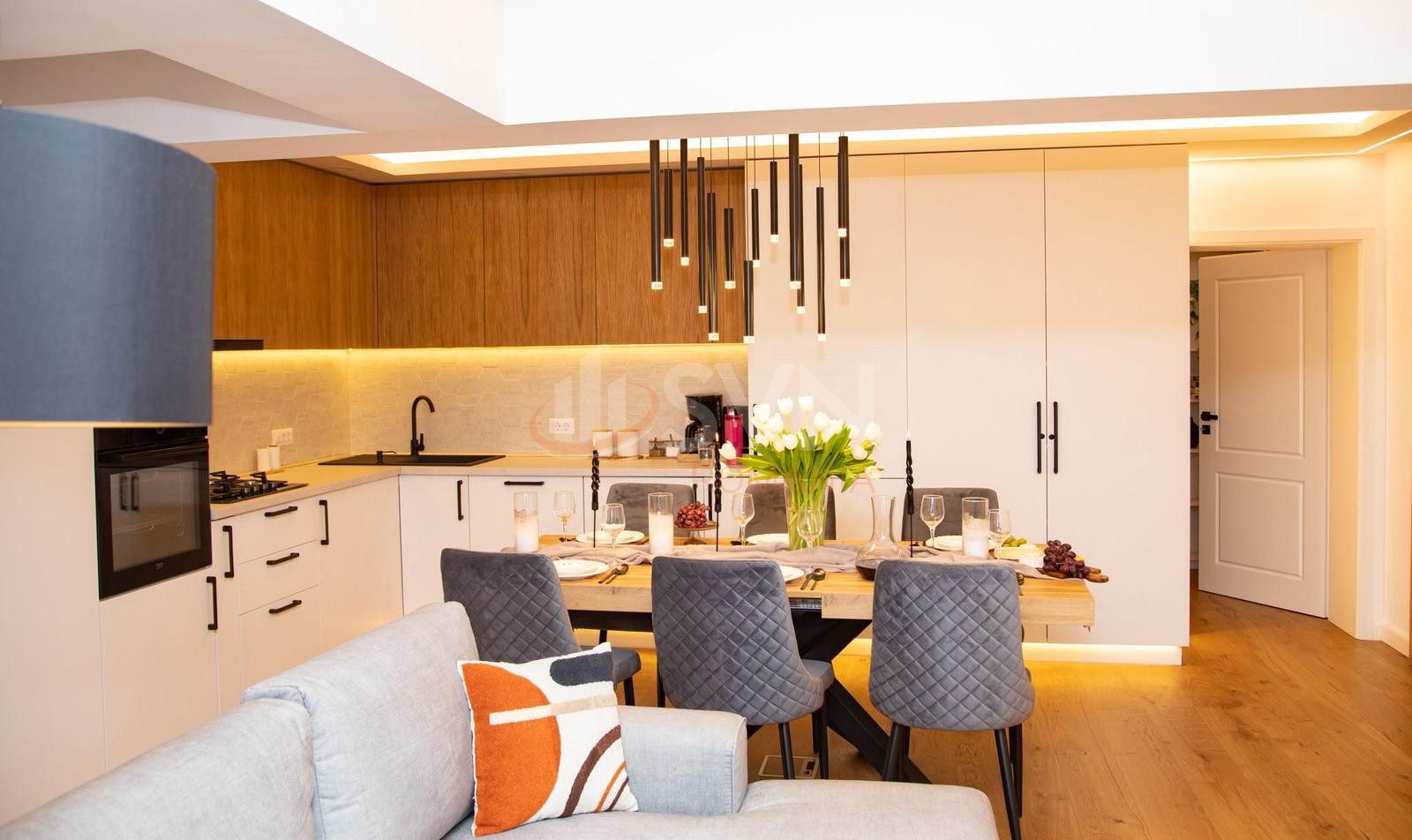 Proprietatea a fost recent renovata integral si se afla la prima inchiriere, toate finisajele, mobilierul si electrocasnicele fiind noi.