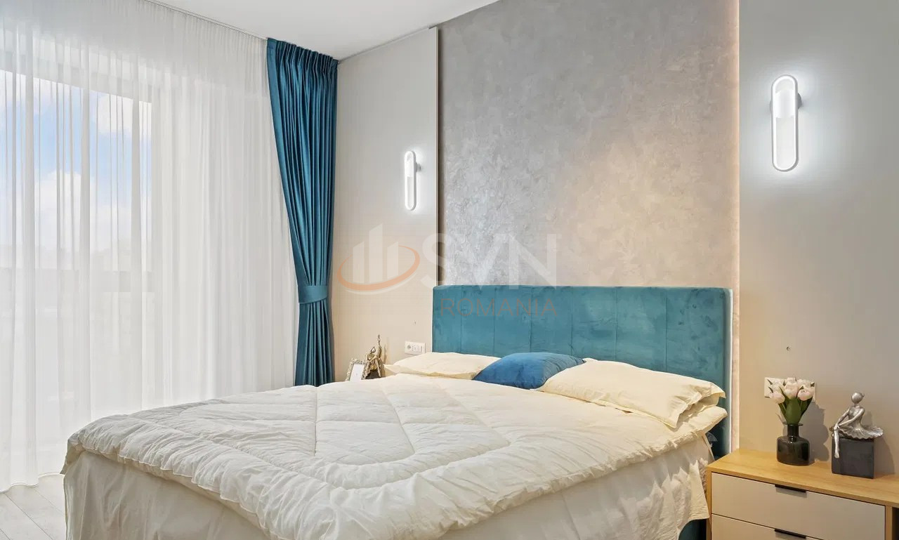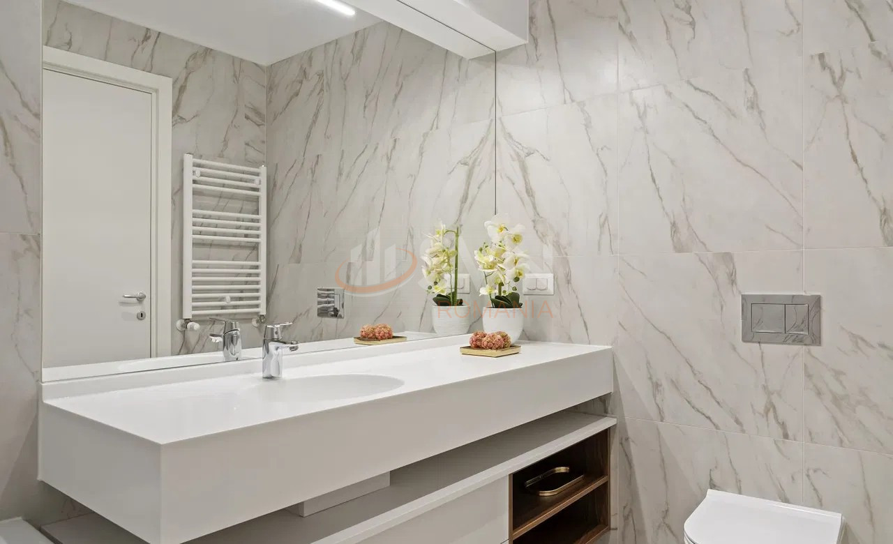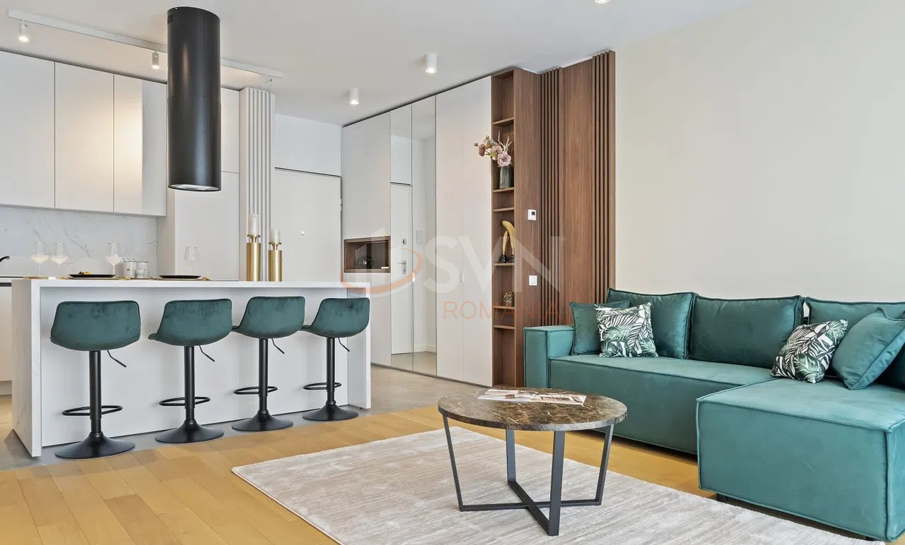 Apartamentele sunt complet mobilate si utilate, incluzand masina de spalat rufe, masina de spalat vase, frigider, plita, cuptor, TV si aer conditionat. Confortul este completat de geamuri din aluminiu, usi si ferestre blindate, interfon si sistem de supraveghere video, oferind un plus de siguranta si intimitate. Optional se poate inchiria un loc de parcare subteran la pretul de 125 euro plus TVA. Pretul chiriei este de 950 euro plus TVA. Se accepta studenti, iar fumatul nu este permis in interiorul proprietatii.
