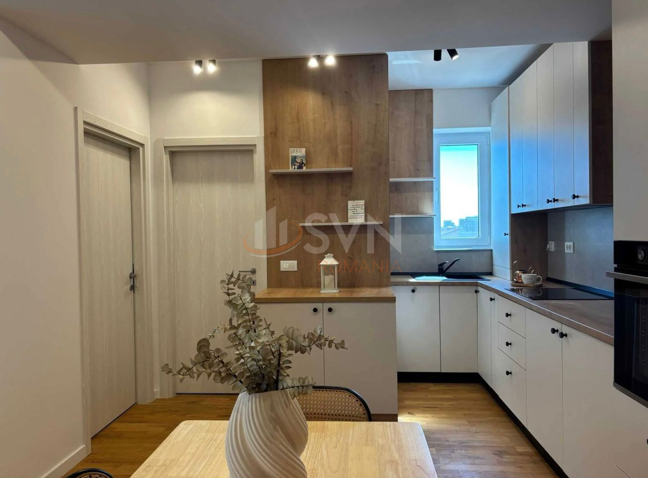 SVN Residentialist Pipera is pleased to offer for rent an elegant 2 room semi-detached apartment, located on the 5th floor of an 11-story building, with a usable area of 52 sqm and a 5 sqm balcony. The apartment is fully furnished and equipped to luxury standards, including a washing machine, dishwasher, air conditioning, and private heating system. This is the first rental of the apartment and it is ready for immediate occupancy.