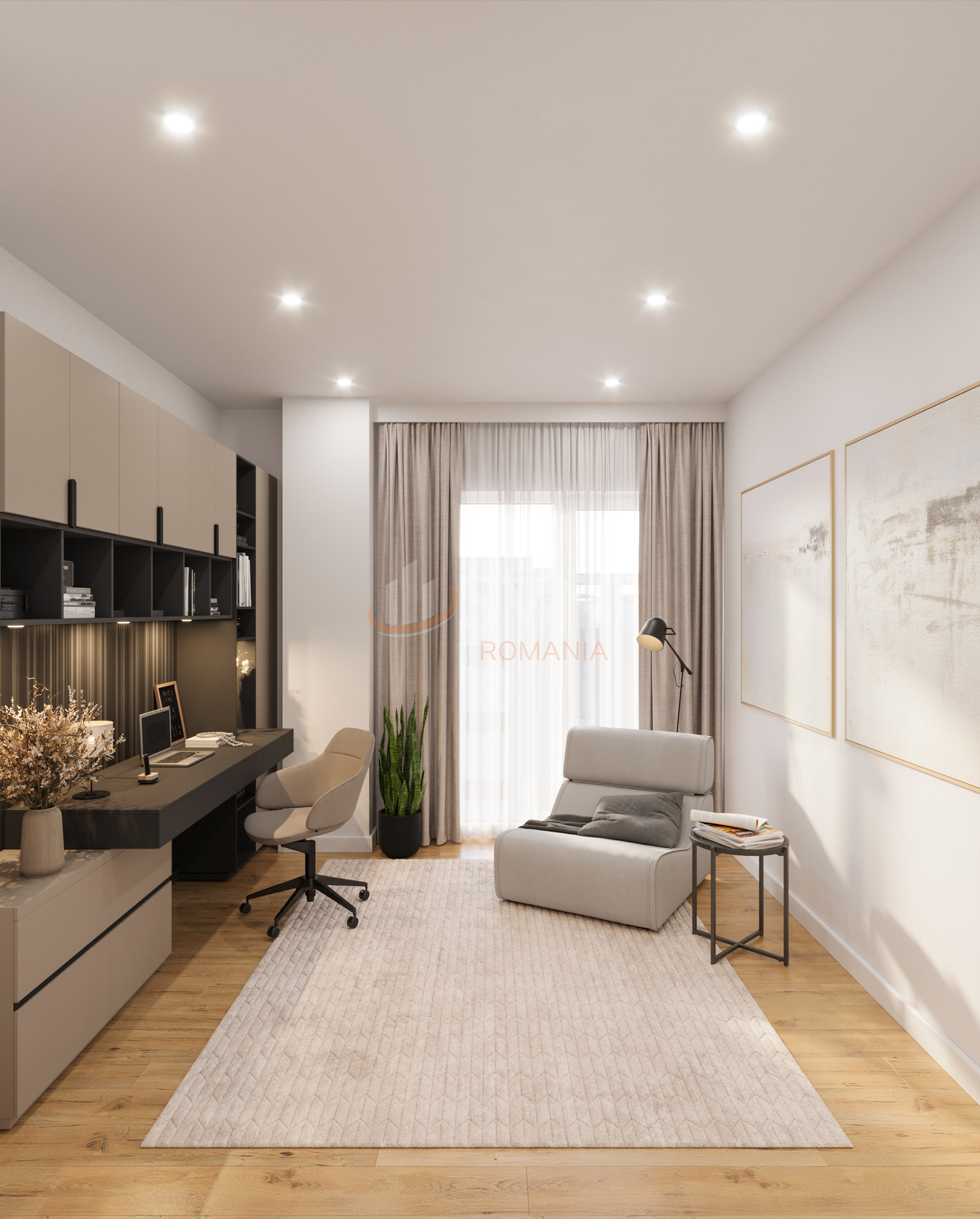 Accesul in apartament se face direct in living, cu o suprafata de 21,9 mp, spatios si luminos, care comunica cu holul central. Din hol se face accesul catre toate incaperile apartamentului, asigurand o circulatie fluida intre zonele de zi si de noapte. Bucataria este inchisa si are 6,6 mp, fiind ideala pentru un spatiu functional si bine delimitat. Zona de noapte este formata din doua dormitoare, unul de 12,0 mp si celalalt de 15,6 mp, ambele deservite de doua bai moderne, cu suprafetele de 3,6 mp si 4,5 mp. Lodgia, cu o suprafata de 6,5 mp, accesibila atat din living cat si dintr-unul dintre dormitoare, ofera un spatiu suplimentar de relaxare si intimitate.