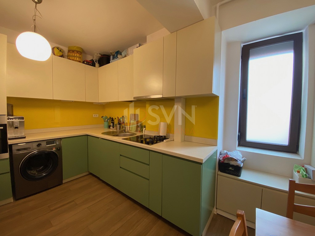 Apartamentul este situat la etajul 2 si beneficiaza de o orientare sud-vest, fiind foarte luminos pe tot parcursul zilei. Dispune de finisaje moderne, 2 bai, centrala termica proprie, aer conditionat si bucatarie complet mobilata.