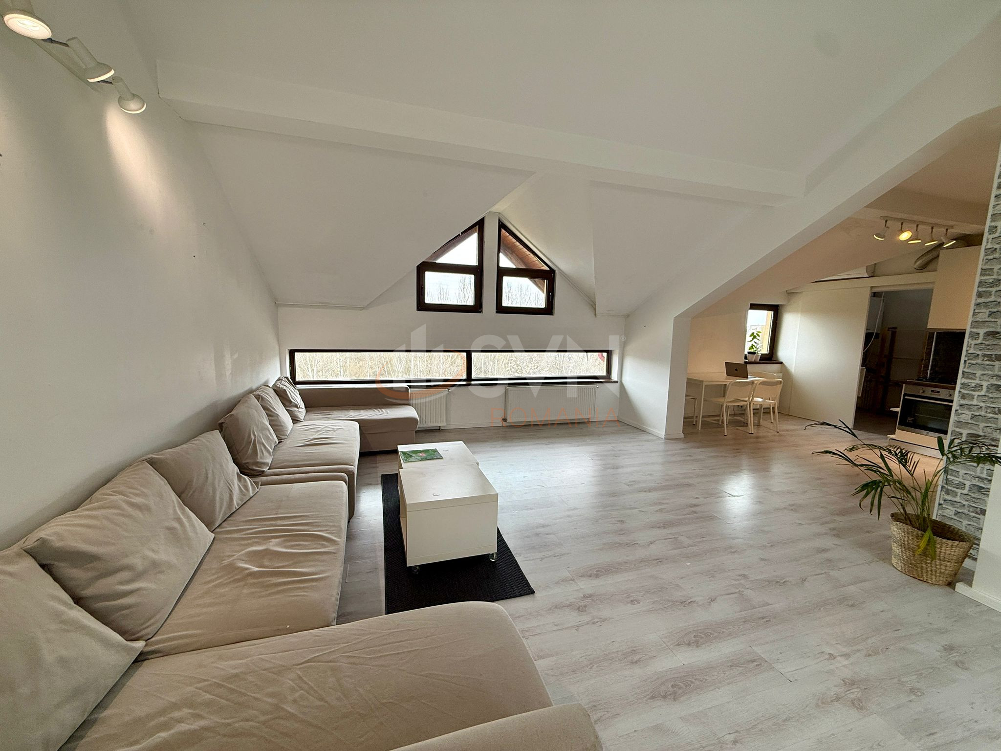 The apartment is situated in the attic of a low-rise building, offering privacy and a bright, airy atmosphere, thanks to generous natural light. The layout is modern and functional, featuring an open space living room with kitchen, creating a welcoming and comfortable area for relaxation and socializing.