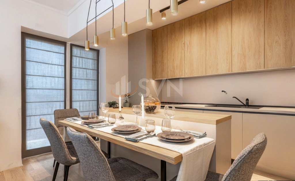 Interiorul este amenajat cu atentie la detalii, folosind materiale si finisaje de inalta calitate, mobilier personalizat si electrocasnice de ultima generatie – totul in conformitate cu tendintele actuale de design si tehnologie.