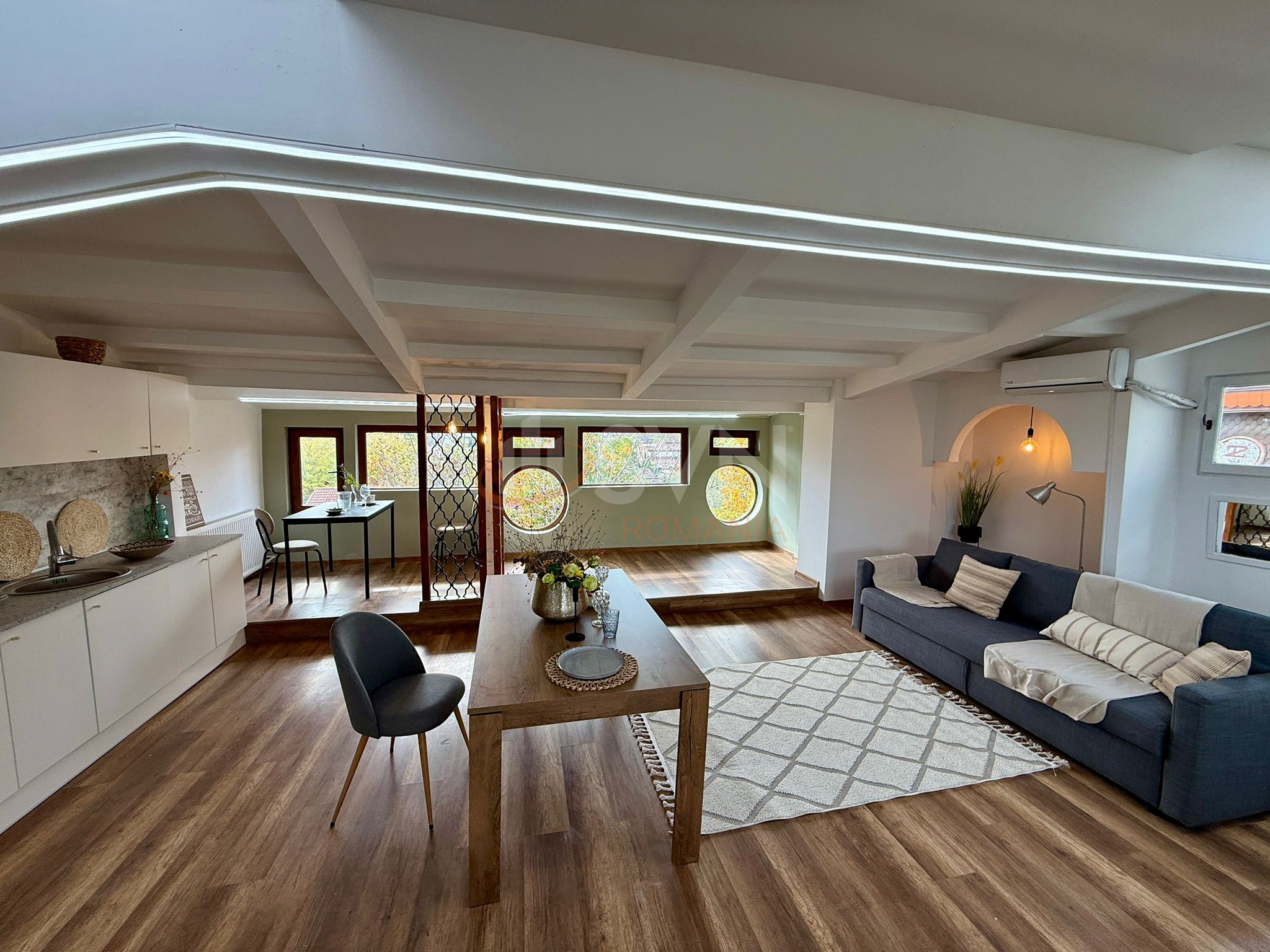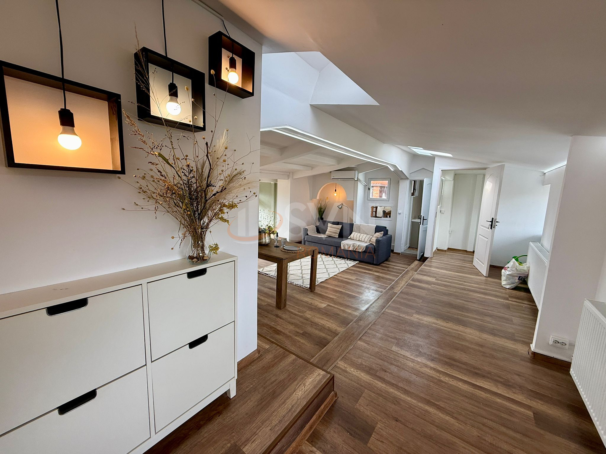 SVN Residentialist Pipera offers for sale an exceptional 4-room apartment located in one of the most sought-after and prestigious residential areas in northern Bucharest – Iancu Nicolae, on Dimitrie Cantemir Street. The property is situated on the top floor (attic) of an elegant building with a height regime of Ground Floor + 3 Floors, completed in 2006, with the added advantage of exclusivity – there is only one apartment per level, ensuring privacy and tranquility.