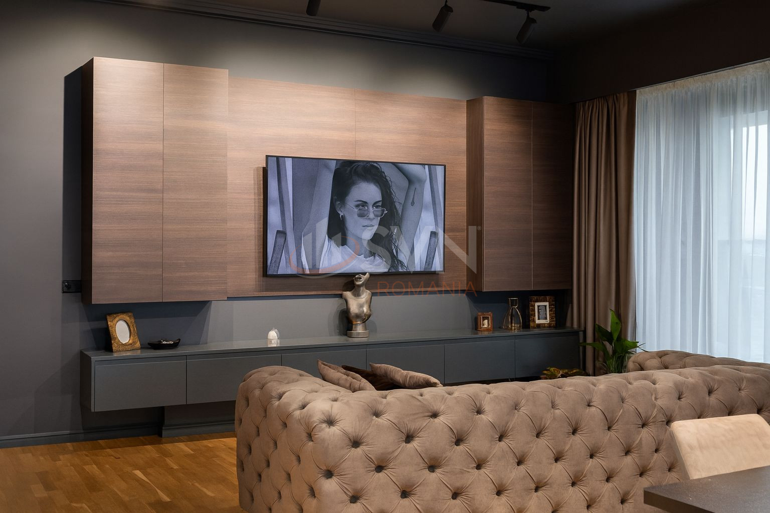 Suprafata totala a apartamentului este de 135,24 mp, in care este inclusa si balconul de 30 mp.