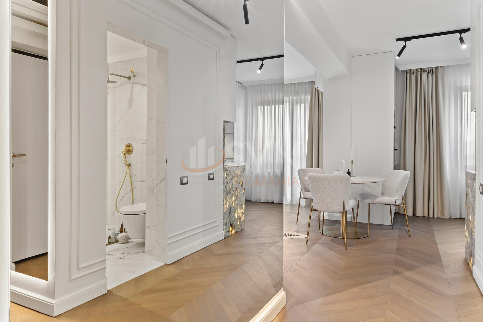 The apartment features premium finishes, using carefully selected materials such as marble, quartz and solid wood, creating a sophisticated and refined living environment. The interior design includes furniture from Everart and Richmond Interiors, combining contemporary aesthetics with functionality and elegance.