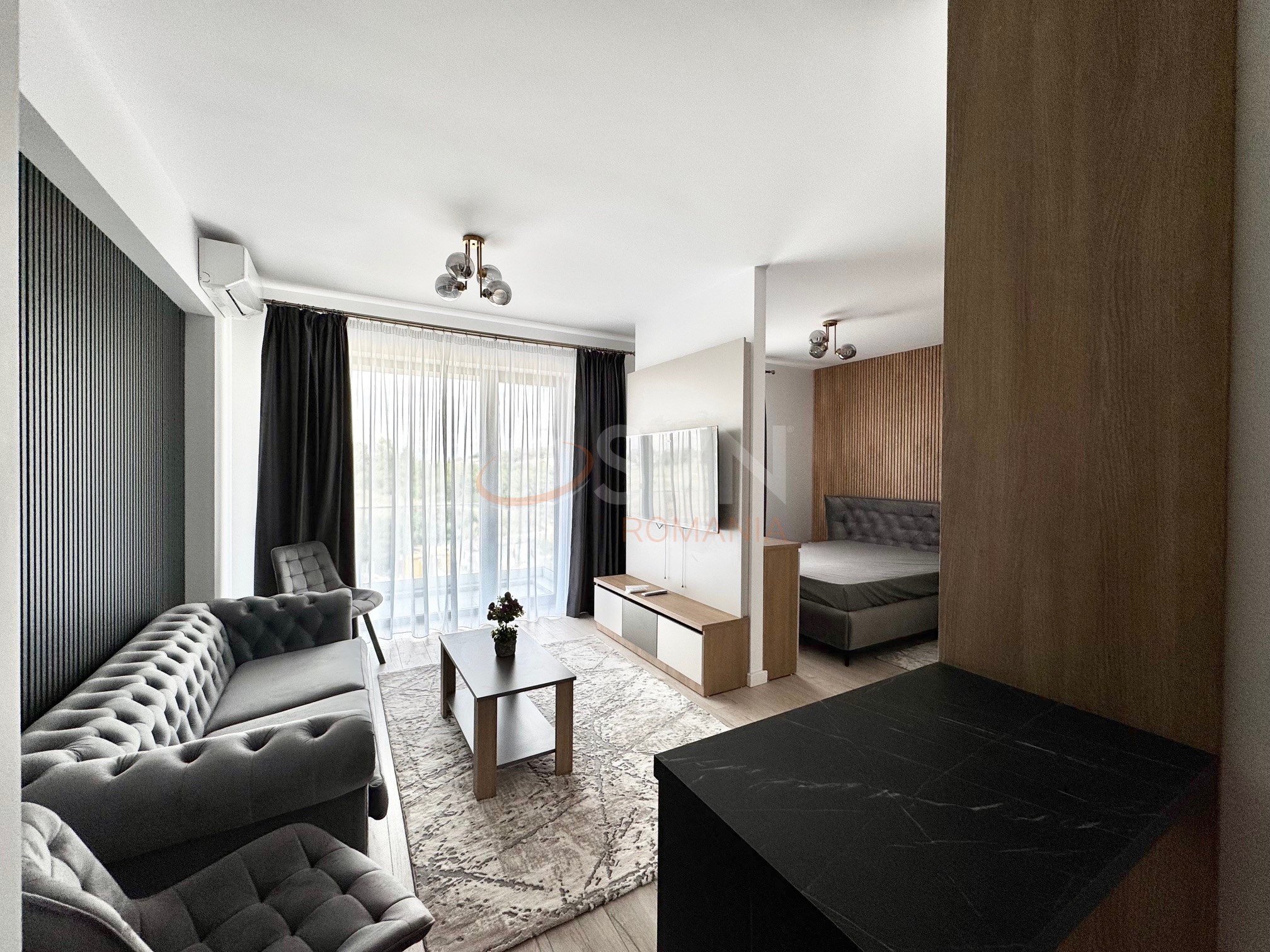 Cu o suprafata generoasa, studioul dispune de o camera spatioasa de zi, mobilata elegant si luminata natural, unde va puteti relaxa si petrece timp de calitate alaturi de familie si prieteni. Bucataria open-space este complet utilata si dotata cu electrocasnice de ultima generatie, oferindu-va posibilitatea de a gati si de a savura mese delicioase într-un mediu modern si placut. De asemenea, livingul are deschidere catre un balcon amenajat perfect pentru a va rasfata dimineata la o cafea in aer liber.