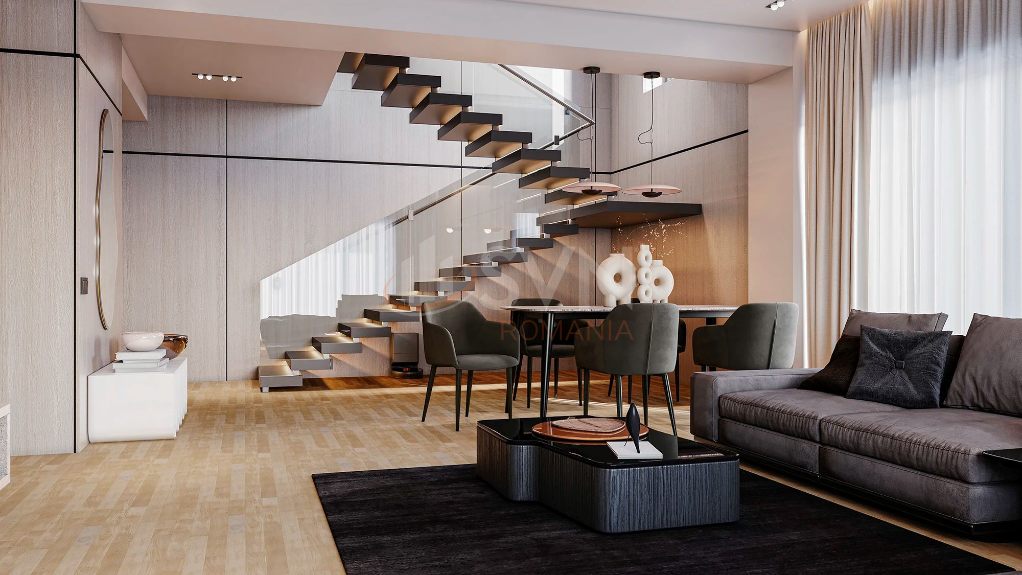 Spatiile sunt gandite inteligent, cu zone de zi luminoase, dormitoare confortabile si suprafete vitrate generoase, care asigura lumina naturala pe tot parcursul zilei. Finisajele sunt de calitate superioara, iar atentia la detalii se reflecta in confortul oferit zilnic.